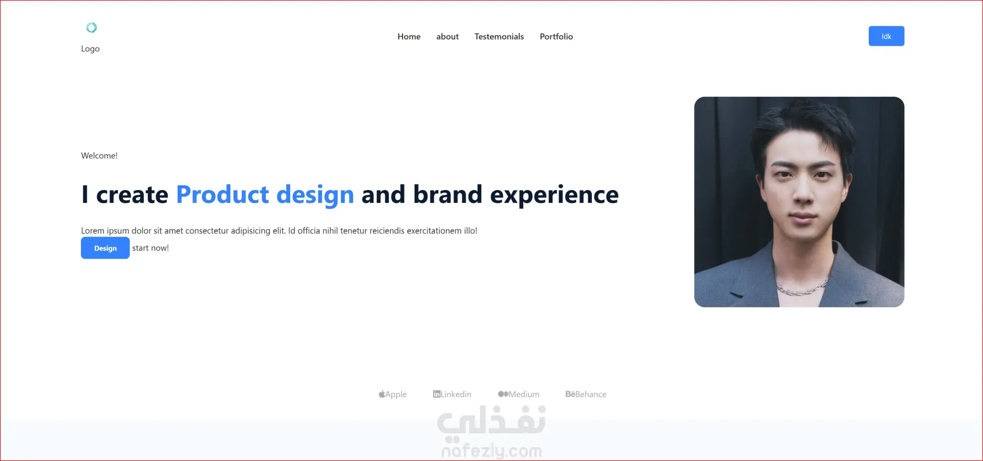 كما يحتوي هذا القسم على زر (Button) يقوم بنقل المستخدم مباشرة إلى قسم نموذج التواصل (Form Section) لطلب مشروع أو خدمة.