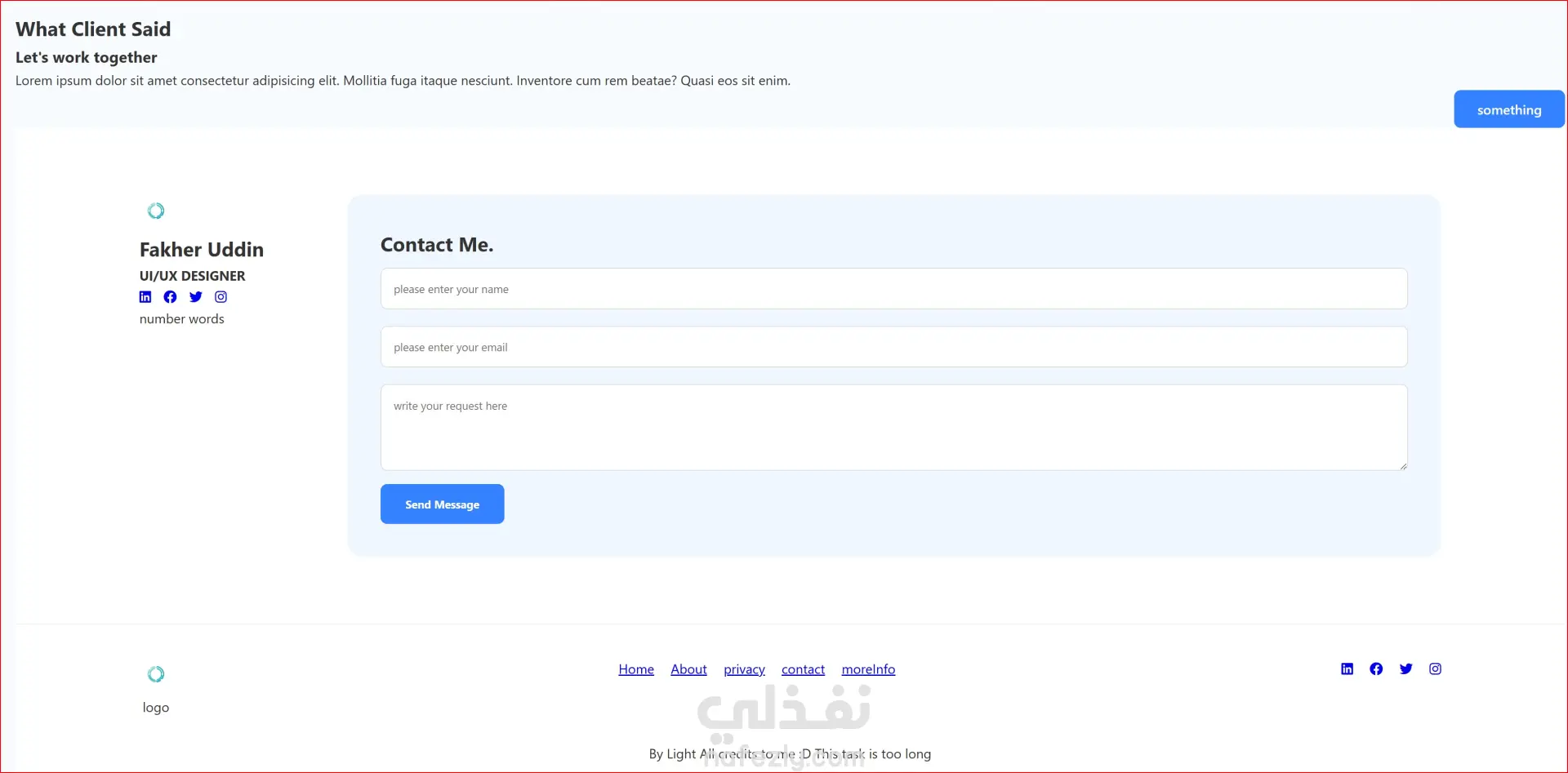 في نهاية الصفحة يوجد نموذج (Form) يمكن للعميل من خلاله إدخال البيانات الخاصة بالمشروع الذي يرغب في تنفيذه، مثل: