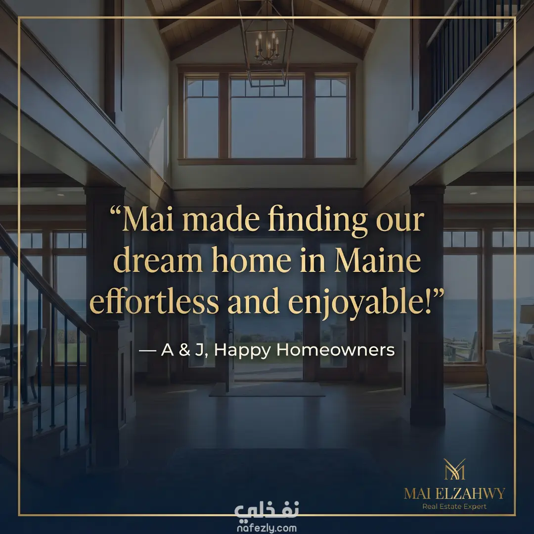 قمت بتنفيذ مشروع متكامل لبناء الهوية البصرية وتصاميم السوشيال ميديا لوكيلة عقارات (Mai Elzahwy) متخصصة في بيع المنازل الفاخرة في ولاية "مين" (Maine) بالولايات المتحدة الأمريكية. الهدف كان خلق طابع من الفخامة (Luxury) والثقة (Trust) لجذب العملاء في السوق الأمريكي.