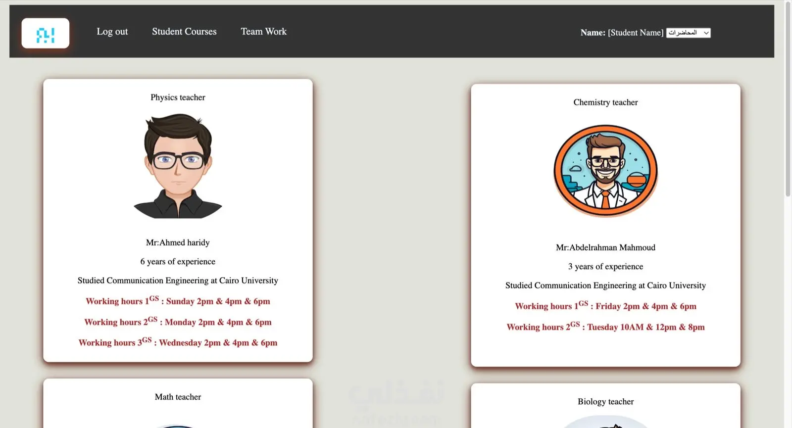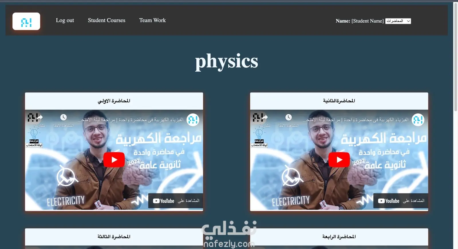 موقع لمنصه تعليميه وصفحات ويب منها Login , وصفحه تحمل كل المواد المتاحه علي المنصه , وصفحه تحمل فيديوهات الماده , وصفحه تحمل مدرسين المواد المتاحه علي المنصه ومعلومات عنهم