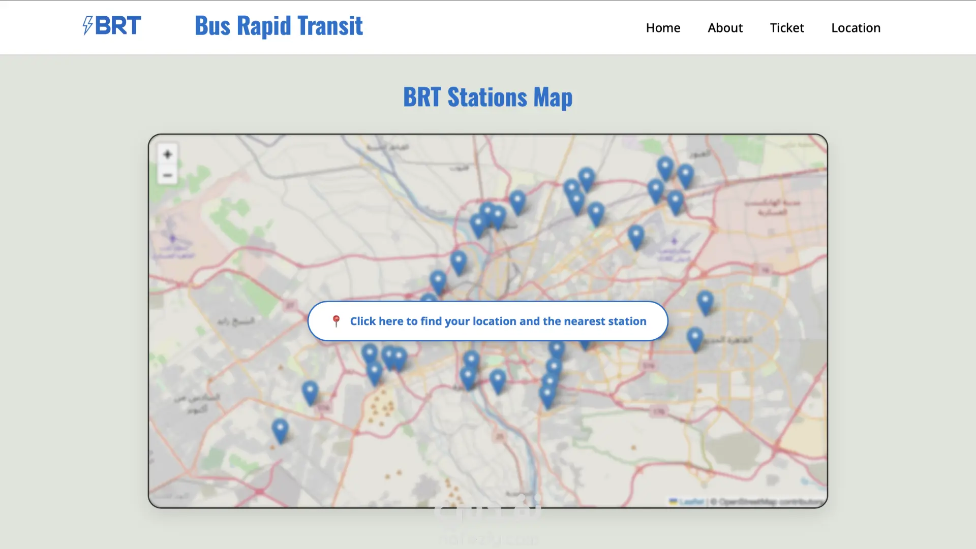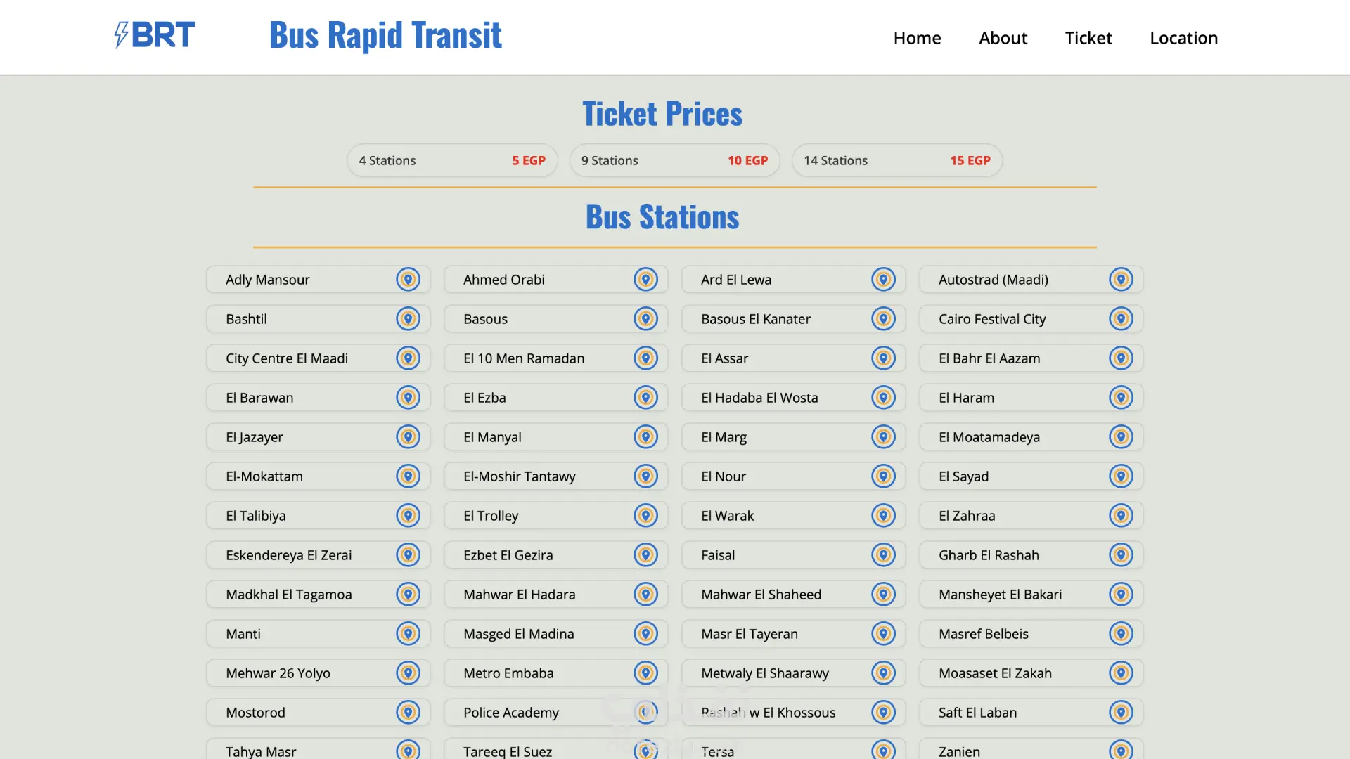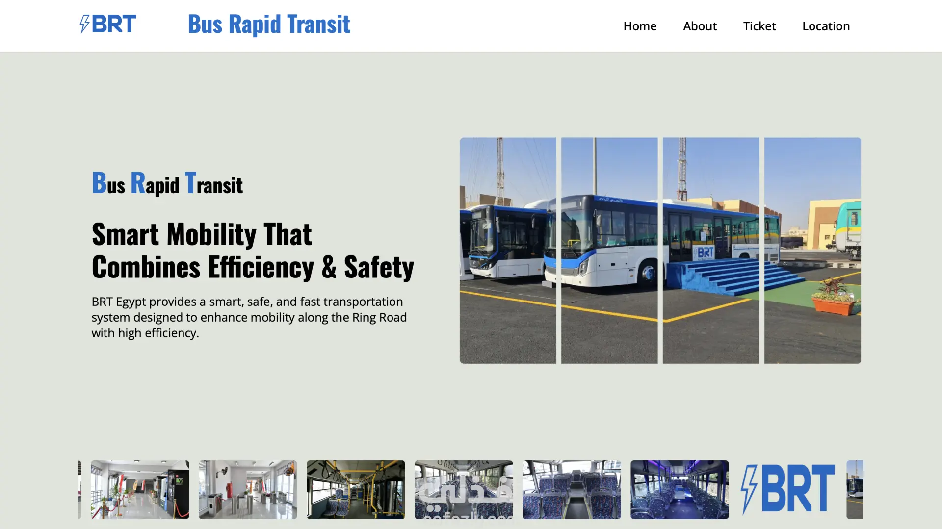 موقع ويب للاتوبيس الترددي يتكون من 4 صفحات ١/ صفحه تحتوي علي صوره للاتوبيس وشريط متحرك للصور والاخبار ٢/ صفحة تحتوي علي احصائيات عن الاتوبيس ٣/صفحة تحتوي علي اسعار التذاكر واسماء ومواقع المحطات ٤/صفحة تحتوي علي خريطه تحددلك طلقائيا اقرب محطه بجوارك