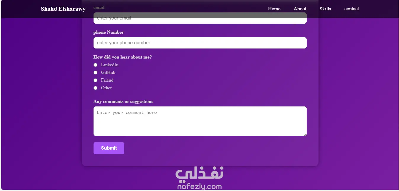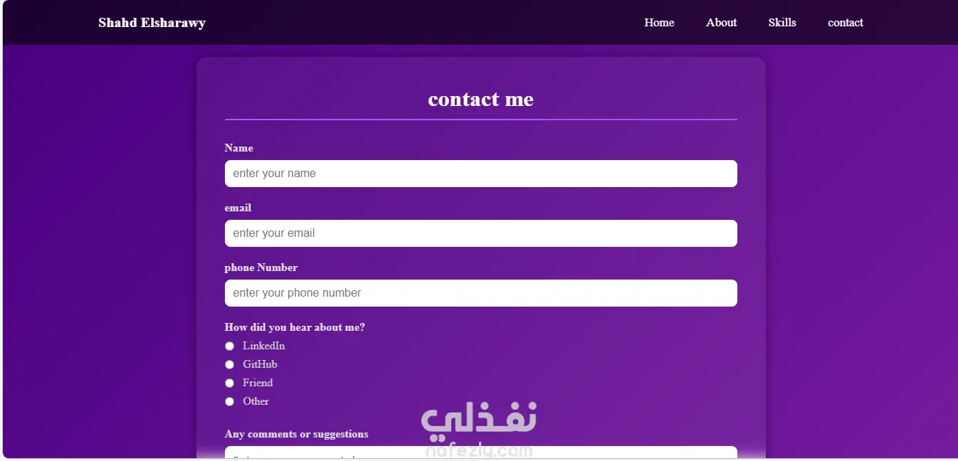 هذا البورتفوليو يعرض هوية أعمالي كمطور Frontend، ويهدف إلى توضيح أسلوبي في تنظيم المحتوى وتصميم الصفحات مع التركيز على تجربة المستخدم البسيطة والواضحة. البورتفوليو يتكون من عدة صفحات: 1. الصفحة الرئيسية (Home Page): مقدمة تعريفية بي وبمجال عملي. 2. صفحة "عنّي" (About Page): وتنقسم إلى جزئيين رئيسيين، قسم "عنّي" (About Me) وقسم "المؤهلات الدراسية" (Education). 3. صفحة "المهارات" (Skills Page): وفيها يتم عرض المهارات التقنية التي أمتلكها، بالإضافة إلى المهارات والتقنيات التي أتعلمها حالياً وأعمل على تطويرها (Current Skills). 4. صفحة "اتصل بي" (Contact Page): وتحتوي على نموذج تواصل (Contact Form) يمكن من خلاله إرسال الرسائل مباشرة. الهدف من هذا البورتفوليو هو إظهار قدرتي على بناء وتنظيم واجهات المستخدم بطريقة احترافية، حتى في غياب مشاريع سابقة، مع التركيز على البساطة وسهولة الاستخدام
