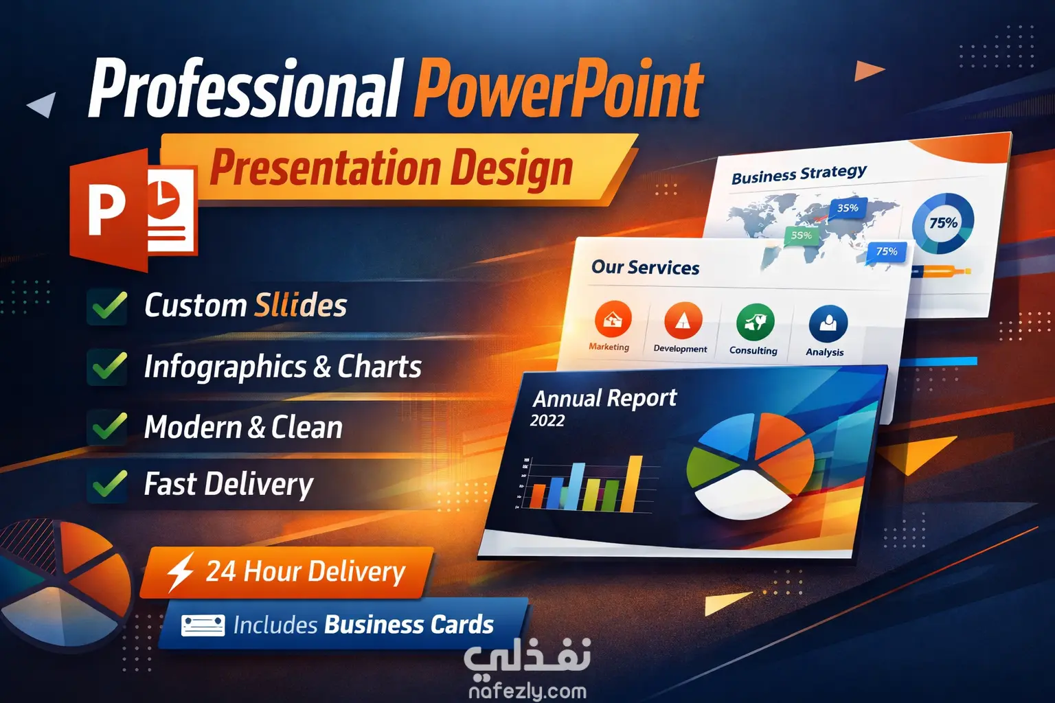 ✔ Professional slide design ✔ Clean and modern layout ✔ Well-organized content ✔ High-quality visuals and icons ✔ Revisions until satisfaction My goal is to create a presentation that looks professional, engaging, and easy to present.