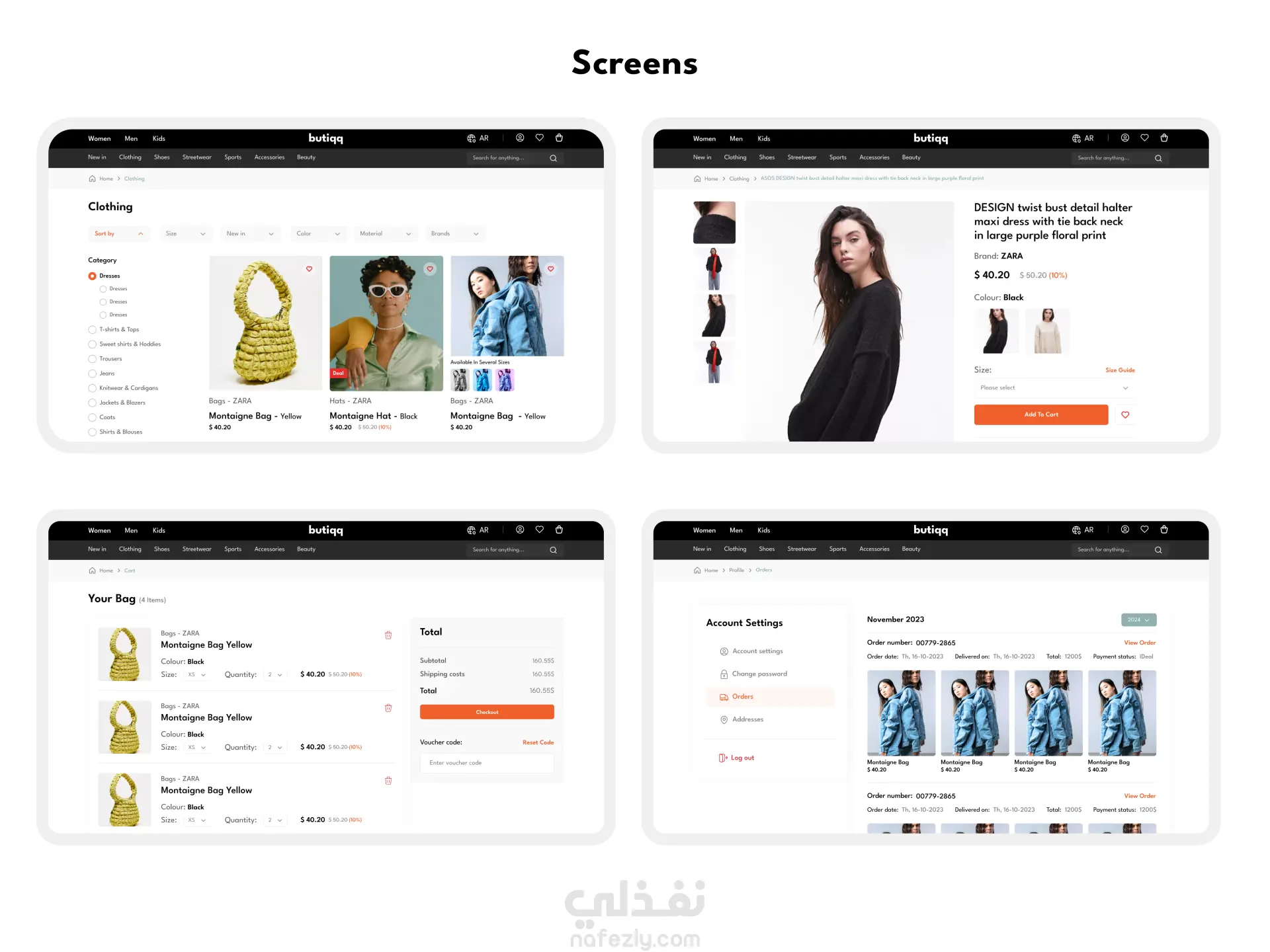 قمت بتصميم واجهة وتجربة مستخدم لموقع تجارة إلكترونية يركز على سهولة التصفح وزيادة معدل التحويل. يشمل التصميم صفحات المتجر، عرض المنتجات، تفاصيل المنتج، السلة، وإتمام الشراء، مع الالتزام بمبادئ الـ UX والـ Design System لضمان تجربة استخدام واضحة وسلسة.