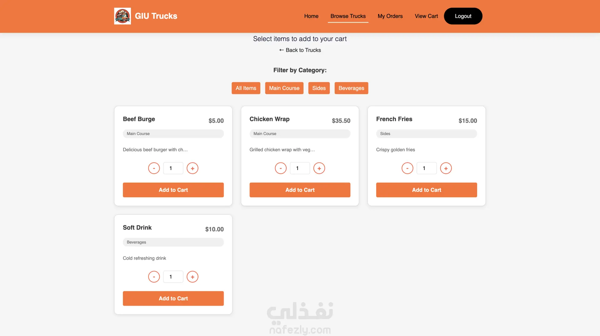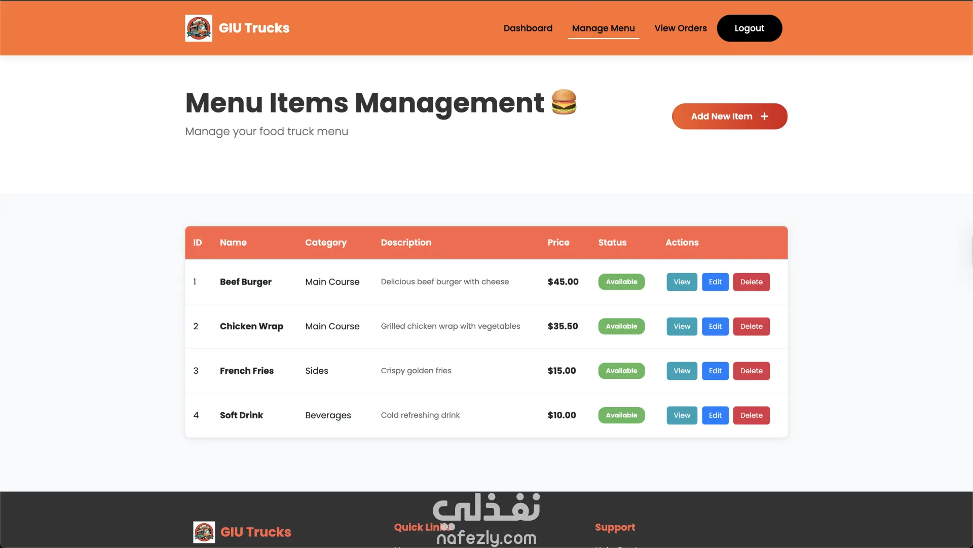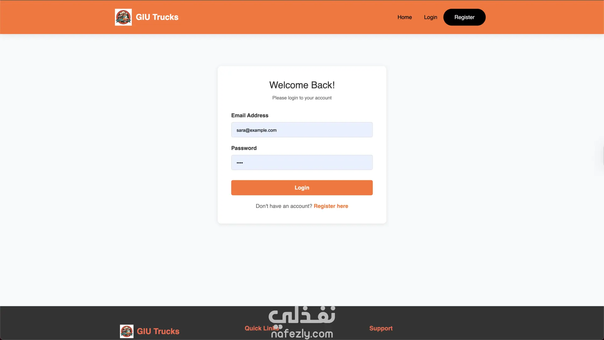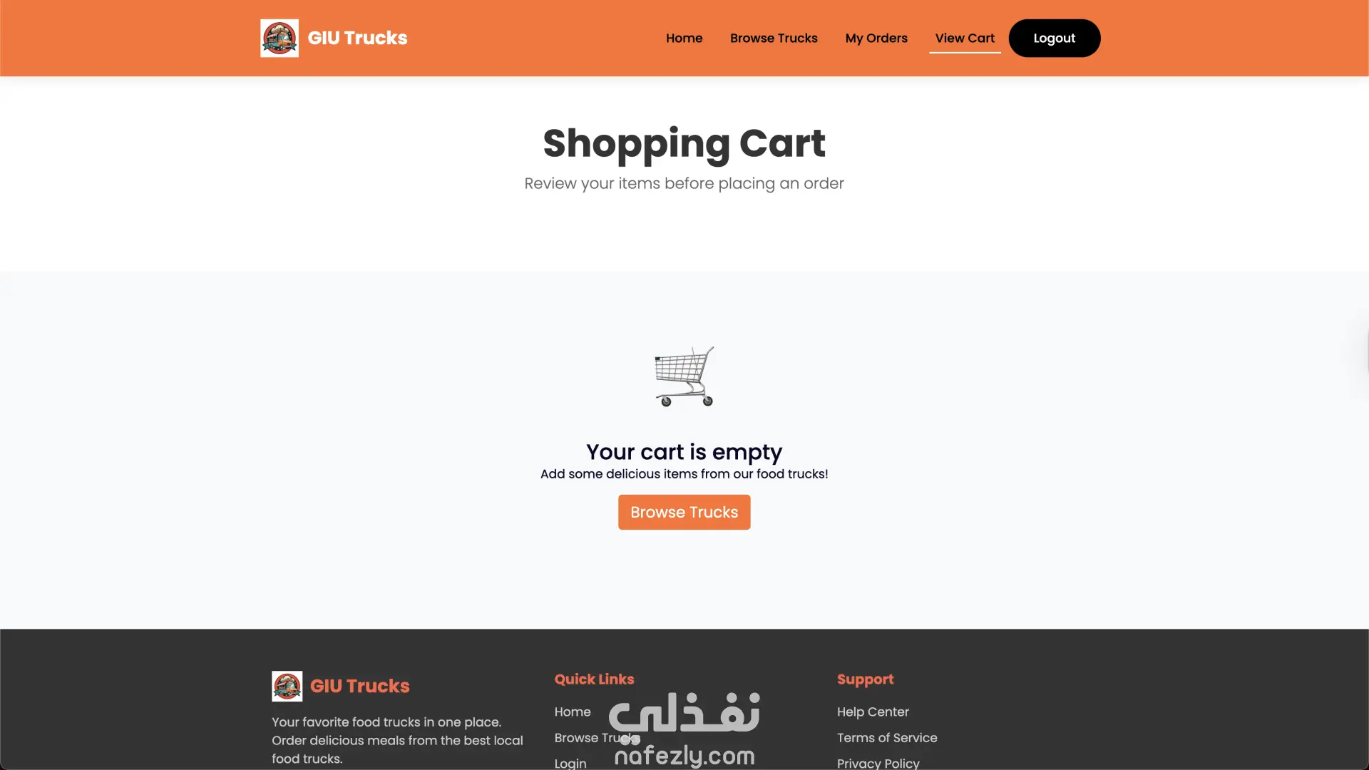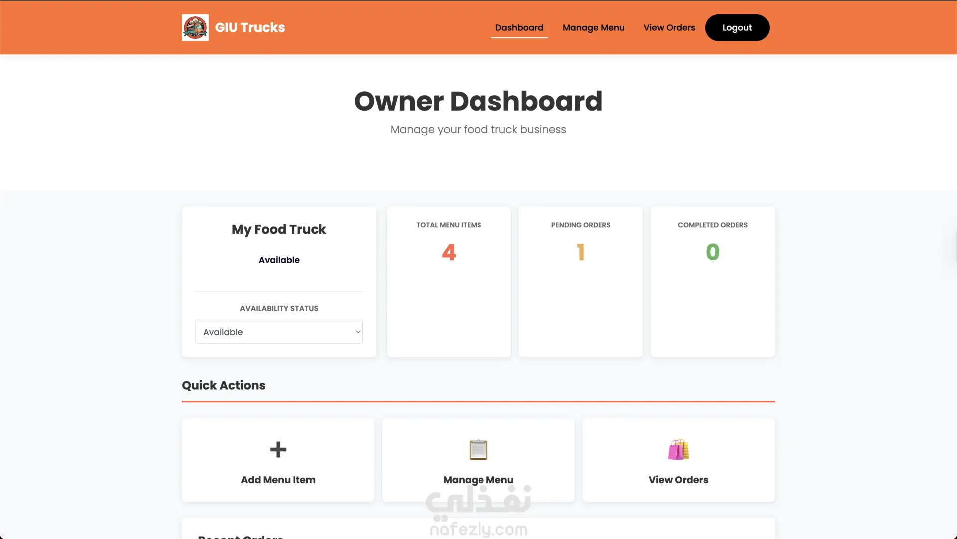 GIU Food Trucks – منصة إدارة وطلب من عربيات الأكل GIU Food Trucks هو تطبيق ويب متكامل يربط بين أصحاب عربيات الأكل (Food Trucks) والعملاء في منصة واحدة سهلة الاستخدام. التطبيق بيسمح للعميل بتصفح العربيات، مشاهدة المنيو، إضافة منتجات للسلة، عمل طلب وتتبع حالته لحظة بلحظة. وفي نفس الوقت بيوفر لوحة تحكم كاملة لصاحب العربة لإدارة المنيو، الطلبات، وحالة التوفر. مميزات العميل (Customer) إنشاء حساب وتسجيل دخول تصفح جميع عربيات الأكل المتاحة عرض المنيو مع التصنيفات والأسعار فلترة المنتجات حسب الفئة (Category) إضافة وتعديل المنتجات في سلة المشتريات تحديد وقت الاستلام (Pickup Time) متابعة حالة الطلب (Pending → Preparing → Ready → Completed) عرض سجل الطلبات والتفاصيل الكاملة لكل طلب مميزات صاحب العربة (Truck Owner) لوحة تحكم تحتوي على إحصائيات (عدد المنتجات – حالة الطلبات) التحكم في حالة العربة (متاح / غير متاح) إدارة المنيو (إضافة – تعديل – حذف منتجات) عرض الطلبات مع إمكانية الفلترة حسب الحالة تحديث حالة الطلب بشكل مباشر التقنيات المستخدمة Frontend HTML5 & CSS3 Bootstrap 4 (تصميم متجاوب Responsive Design) jQuery (AJAX & DOM Manipulation) Backend Node.js (بيئة التشغيل) Knex.js (Query Builder للتعامل مع قاعدة البيانات) Database PostgreSQL (قاعدة بيانات علائقية) فكرة المشروع تقنياً تم بناء RESTful API مكون من 22 Endpoint. نظام صلاحيات (Authentication & Authorization) يفصل بين العميل وصاحب العربة. استخدام PostgreSQL لإدارة العلاقات بين: المستخدمين عربيات الأكل المنتجات الطلبات السلة تحديث حالة الطلب ديناميكياً عبر API. هيكلة المشروع تعتمد على تنظيم واضح للـ routes و controllers و database connectors. الهدف من المشروع إنشاء نظام طلب وإدارة احترافي يحاكي أنظمة طلب الطعام الحقيقية مثل Talabat أو Uber Eats ولكن مخصص لنظام عربيات الأكل.