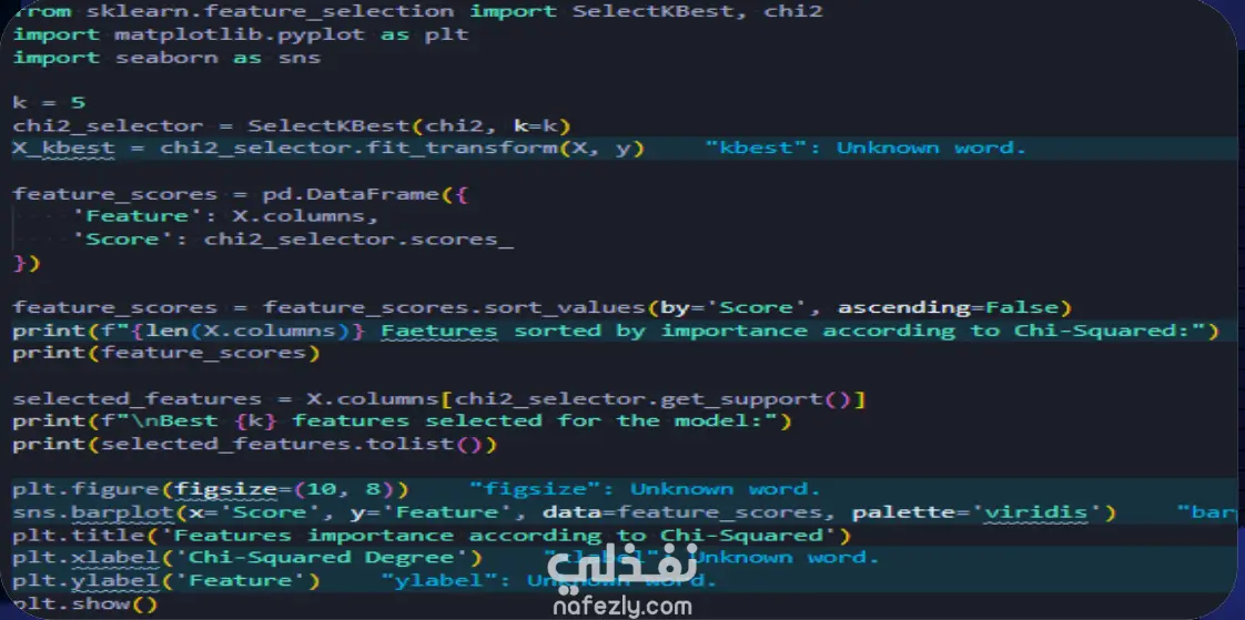 قمنا باستخدام خوارزمية **Chi-Squared** لاختيار الخصائص الأكثر تأثيرًا على نتيجة التصنيف.