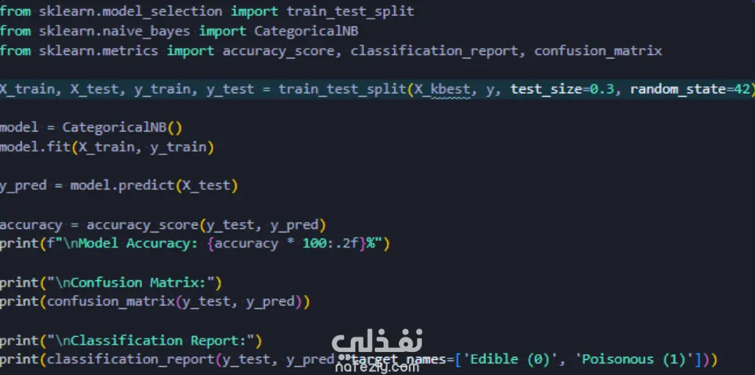 قمنا بتطبيق نموذج Categorical Naive Bayes باستخدام مكتبة scikit-learn.