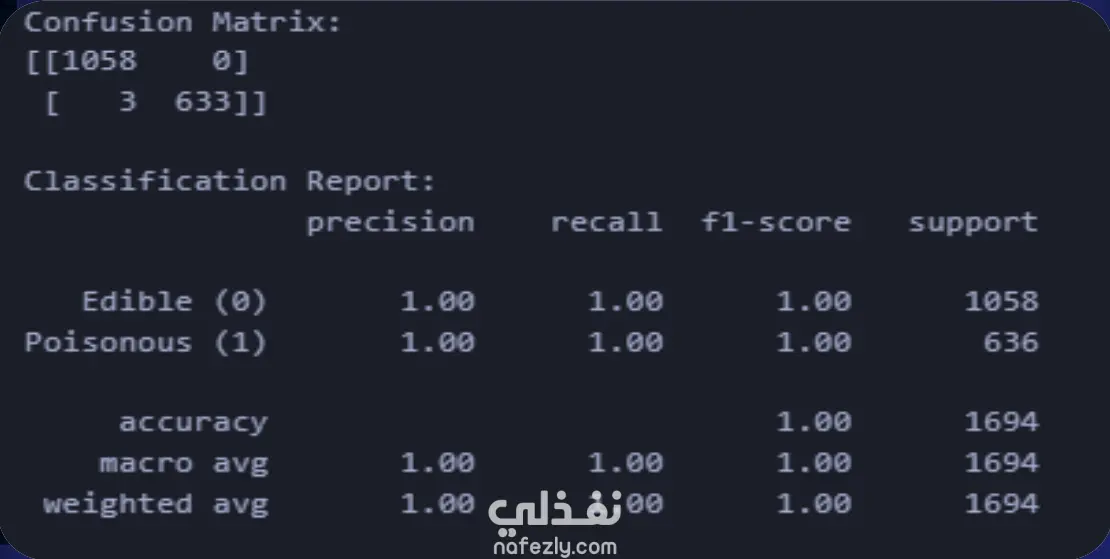تم بناء نموذج تصنيف فعال باستخدام خوارزمية Naive Bayes قادر على تحليل خصائص الفطر والتنبؤ بما إذا كان صالحًا للأكل أو سامًا. يبرز هذا المشروع قدرتي على العمل مع خوارزميات التعلم الآلي وتنفيذ خطوات معالجة البيانات وبناء النماذج وتحليل النتائج.