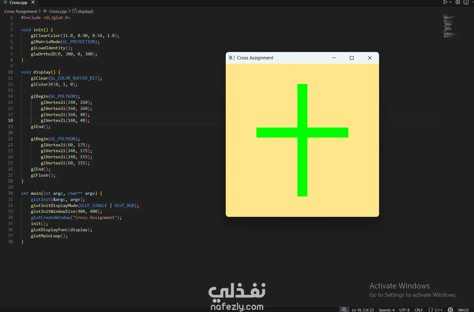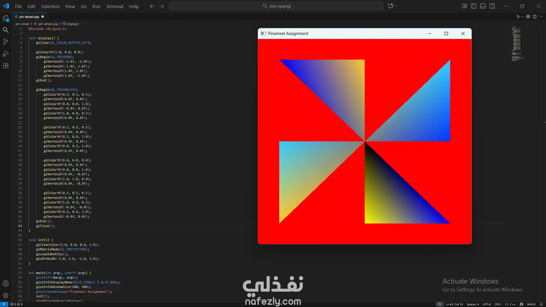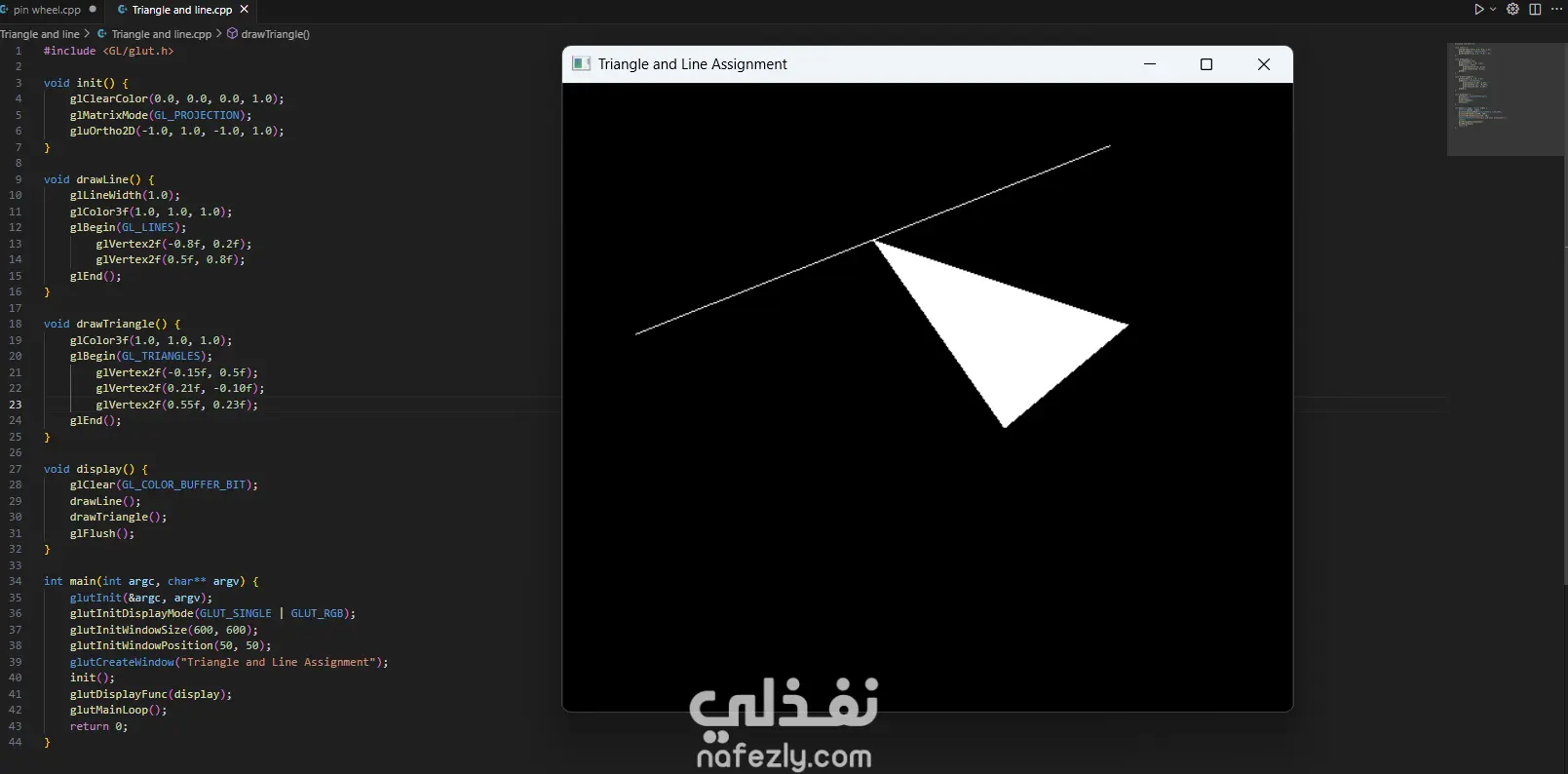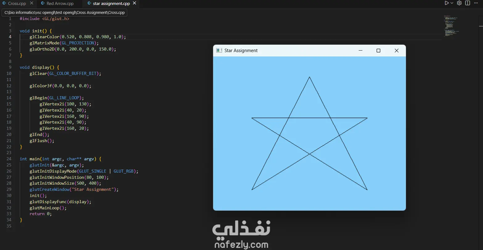 السلام عليكم ورحمة الله وبركاته، أقدم لكم هذا المشروع الذي يعرض خبرتي العملية في مجال **الرسوميات الحاسوبية (Computer Graphics)** باستخدام مكتبة OpenGL ولغة C++. يهدف المشروع إلى تطبيق المفاهيم الأساسية في الرسوميات الحاسوبية مثل رسم الأشكال الهندسية وتنفيذ التحويلات الثنائية والثلاثية الأبعاد. - آلية التنفيذ والعمل المنجز: -- إعداد بيئة العمل وبرمجة الرسوميات: بدأت المشروع باستخدام مكتبة **OpenGL** مع مكتبة **GLUT** لإنشاء نافذة رسومية تتيح عرض العناصر الهندسية ومعالجتها. تم إعداد بيئة الرسم باستخدام الدوال الأساسية مثل: * تهيئة نافذة العرض * تحديد نظام الإحداثيات * إدارة الـ Rendering Loop - رسم الأشكال الهندسية الأساسية: قمت بتنفيذ عدة برامج لرسم أشكال هندسية باستخدام OpenGL مثل: * رسم نقاط متعددة باستخدام `GL_POINTS` * رسم خطوط مستقيمة باستخدام `GL_LINES` * رسم مثلثات باستخدام `GL_TRIANGLES` * إنشاء أشكال مركبة مثل النجمة والأسهم والأشكال الهندسية المختلفة تم تحديد إحداثيات كل شكل باستخدام الدالة `glVertex` وتحديد الألوان باستخدام `glColor`. - تنفيذ التحويلات الثنائية الأبعاد (2D Transformations): كجزء من المشروع، قمت بتطبيق التحويلات الأساسية على الأشكال ثنائية الأبعاد مثل: * Translation (نقل الشكل من موقع لآخر) * Rotation (تدوير الشكل حول محور) * Scaling (تكبير أو تصغير الشكل) * Reflection (انعكاس الشكل) * Shearing (تشويه الشكل) تم تنفيذ هذه العمليات باستخدام الدوال الرسومية مثل `glTranslate`, `glRotate`, و `glScale`. -تنفيذ التحويلات ثلاثية الأبعاد (3D Transformations): قمت أيضًا بتطبيق نفس المفاهيم على مجسمات ثلاثية الأبعاد مثل **الهرم (Pyramid)**، حيث تم تنفيذ: * Translation ثلاثي الأبعاد * Rotation ثلاثي الأبعاد * Scaling ثلاثي الأبعاد * Reflection * Shearing مما يوضح كيفية التحكم في المجسمات داخل الفضاء ثلاثي الأبعاد. -تنظيم الكود والتطبيق العملي: تم تقسيم البرامج إلى ملفات منفصلة لكل نوع من العمليات، بحيث يوضح كل برنامج مفهومًا محددًا من مفاهيم الرسوميات الحاسوبية. - النتائج: نتج عن المشروع مجموعة من التطبيقات الرسومية التي توضح كيفية استخدام OpenGL لرسم الأشكال الهندسية وتنفيذ التحويلات المختلفة عليها. يبرز المشروع فهمي لأساسيات **Computer Graphics** وكيفية التعامل مع الإحداثيات والتحويلات في البيئات الرسومية. - المهارات والأدوات المستخدمة: * Computer Graphics Programming * OpenGL * GLUT Library * C++ Programming * 2D Transformations * 3D Transformations * Geometry Rendering