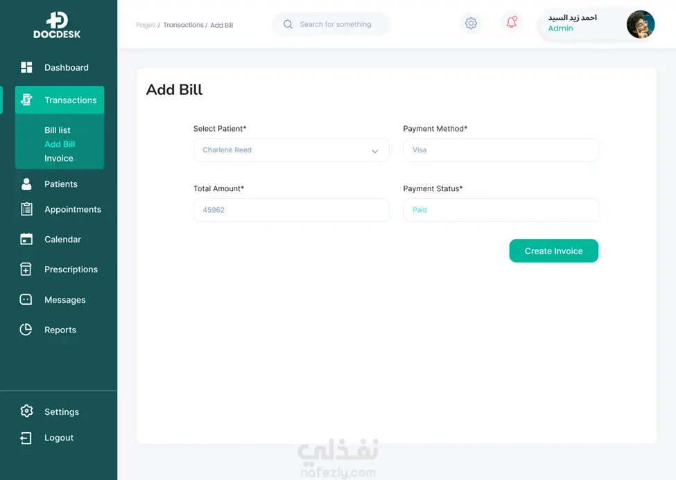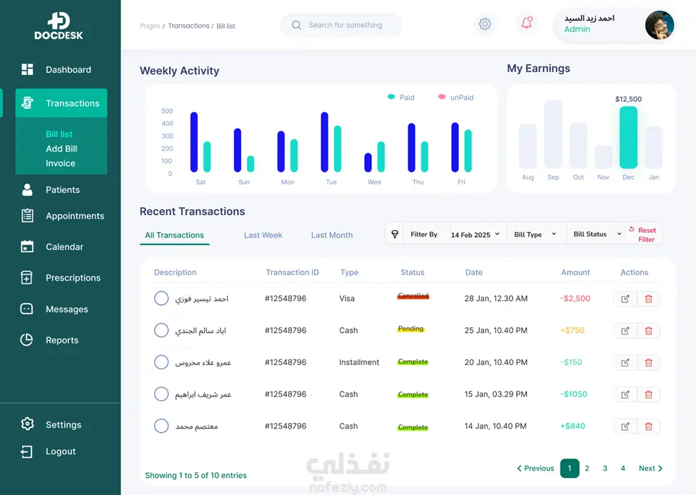 إدارة ذكية للعيادة: صلاحيات مخصصة (Role-based)، فواتير، تصدير تقارير (PDF)، ومزامنة التقويم.