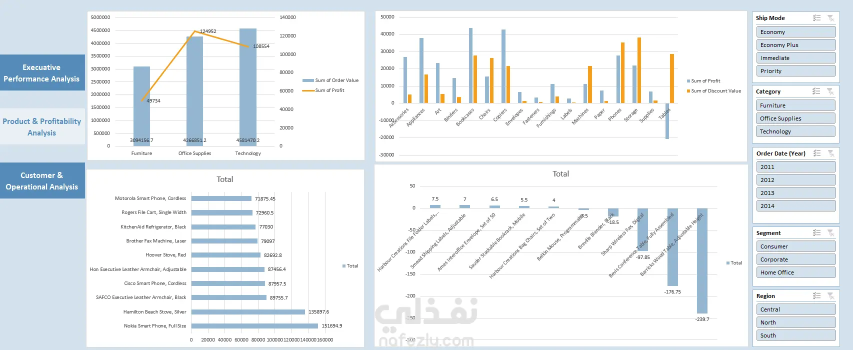 لوحة تحليل أداء المبيعات والأرباح: رؤية شاملة لمؤشرات الأداء الرئيسية وأداء الفرق والمنتجات