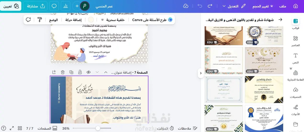 التصميم على برنامج كانفا