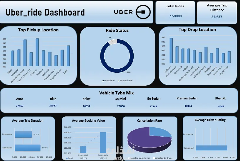 هذا المشروع يركز على تحليل بيانات رحلات Uber لسنة 2024 بهدف استخراج رؤى ومعرفة الاتجاهات المتعلقة بالاستخدام، مثل أنماط الرحلات والسلوك العام للمستخدمين. من خلال تحليل هذه البيانات، يمكن فهم أهم مؤشرات الأداء مثل توزيع الرحلات بحسب الوقت، الفئات، المسافات، والأيام، مما يساهم في دعم اتخاذ قرار مبني على البيانات وتحسين العمليات المرتبطة بخدمات Uber. * التحليل قد يشمل: - تنظيف ومعالجة البيانات الخام - تحليل إحصائي لأنماط الرحلات - تصور البيانات باستخدام رسوم بيانية ومخططات *استنتاجات تدعم فهم كيفية استخدام الخدمة عبر فئات مختلفة من المستخدمين والأوقات * الهدف الأساسي من المشروع هو تحويل بيانات الرحلات إلى رؤى تحليلية قابلة للفهم تساعد في تقييم الأداء وتحديد العوامل المهمة في سلوكيات الركاب والسائقين.