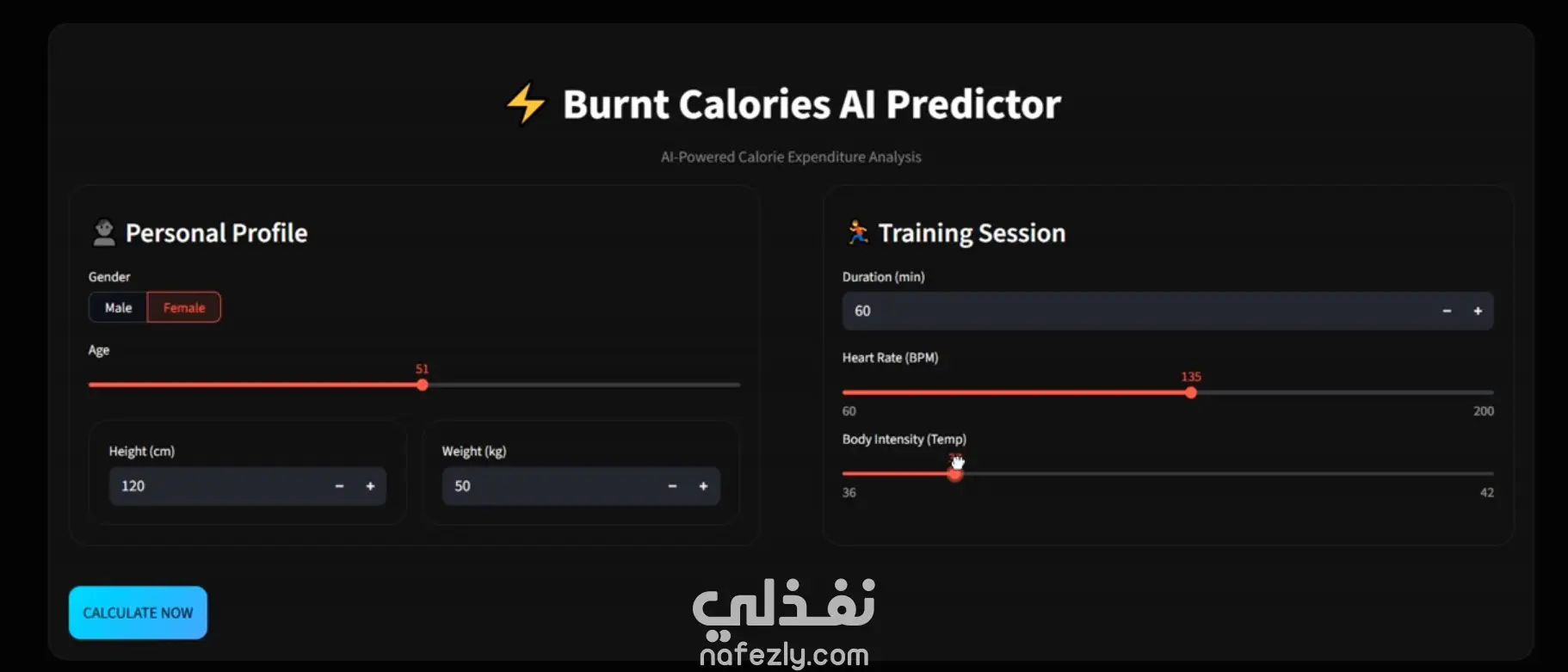 تطبيق للتنبؤ بعدد السعرات الحرارية المحروقة