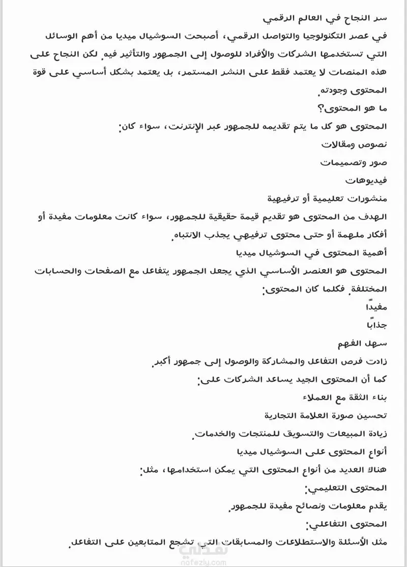 عملية إنشاء محتوى مكتوب يهدف إلى إعلام أو ترفيه أو إقناع القراء. تشمل التخطيط والبحث إلى الكتابة والتحرير. *أنواع المقالات* - مقالات إخبارية - مقالات تعليمية - مقالات ترفيهية - مقالات تسويقية *خطوات كتابة المقالات* 1. *اختيار الموضوع*: حدد الموضوع الذي تريد الكتابة عنه. 2. *البحث*: قم ببحث الموضوع لجمع المعلومات. 3. *التخطيط*: خطط هيكل المقالة. 4. *الكتابة*: اكتب المقالة بسلاسة ووضوح. 5. *التحرير*: قم بتحرير المقالة لضمان الجودة. *نصائح لكتابة مقالات جيدة* - استخدم لغة بسيطة وواضحة. - استخدم الأمثلة والصور لتوضيح النقاط. - قم بتحرير المقالة قبل النشر. - استخدم العناوين والفقرات لتنظيم المقال