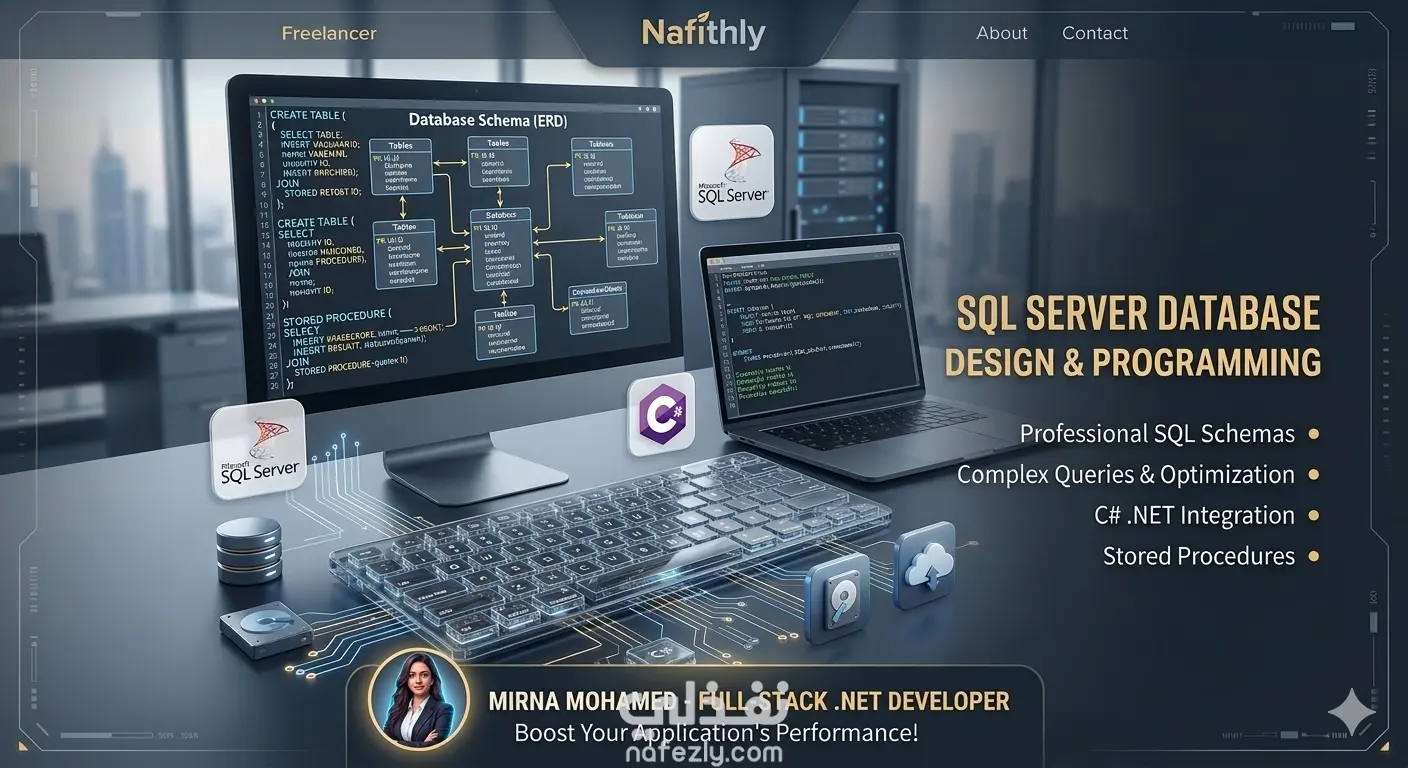 هل تحتاج قاعدة بيانات قوية، منظمة، وسريعة لنظامك؟ بصفتي متخصصة في SQL Server، أقدم لك خدمة بناء الـ Architecture الكامل لبيانات مشروعك. تصميم جداول مترابطة (ERD) تمنع تكرار البيانات. تصميم mapping صحيح 100% كتابة استعلامات معقدة (Complex Queries) و (Stored Procedures) سريعة. تحسين أداء الجداول الحالية ومعالجة مشاكل البطء. ربط البيانات بمنطق العمل (Business Logic) باحترافية. النتيجة: قاعدة بيانات صلبة تدعم نمو مشروعك بدون أخطاء