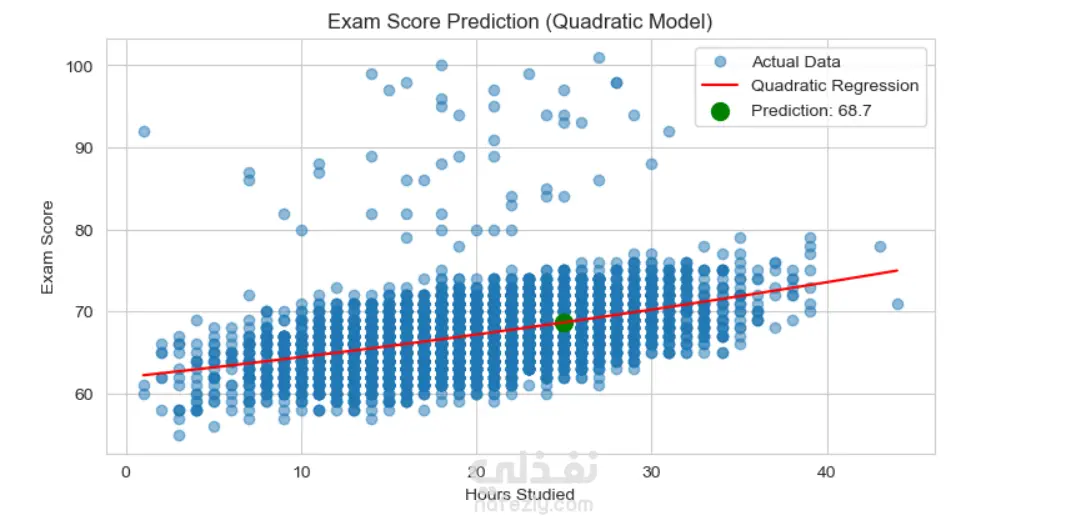 Build a model to predict students' exam scores based on their study hour. Perform data cleaning and basic visualization to understand the data Train a linear regression model to estimate final score. Visualize predictions and evaluate model performance Modeling by polynomial regression and compare performance