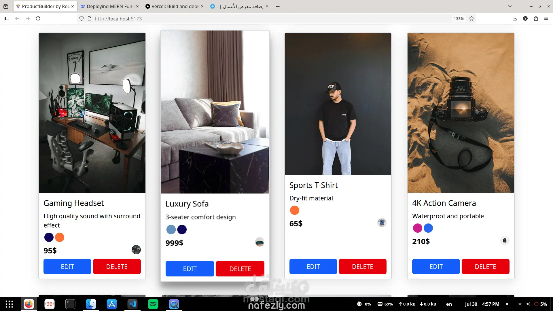 تطبيق ويب متكامل لإدارة المنتجات طور بشكل فردي تطبيق ويب كامل (Full Stack) يتيح للمستخدمين إضافة، تعديل، حذف، واستعراض المنتجات من خلال واجهة تفاعلية وسهلة الاستخدام. التطبيق يدعم جميع عمليات CRUD، وتم تصميمه ليكون سريع الاستجابة ومرن في التعامل مع البيانات. الجانب الأمامي (Front-End) تم بناؤه باستخدام React.js وTypeScript وTailwind CSS، مع التركيز على تجربة مستخدم سلسة وتصميم متجاوب لجميع الشاشات. أما الجانب الخلفي (Back-End)، فتم تطويره باستخدام Node.js وExpress.js مع قاعدة بيانات MongoDB، مع بناء واجهات RESTful API للتواصل بين الواجهة والخادم بكفاءة. ️ التقنيات المستخدمة: React.js – TypeScript – Tailwind CSS – Node.js – Express.js – MongoDB المميزات: تصميم عصري وسهل الاستخدام دعم كامل لإدارة المنتجات (إضافة – تعديل – حذف – عرض) هيكلة نظيفة وقابلة للتوسعة فصل واضح بين الواجهة والباك إند باستخدام RESTful APIs
