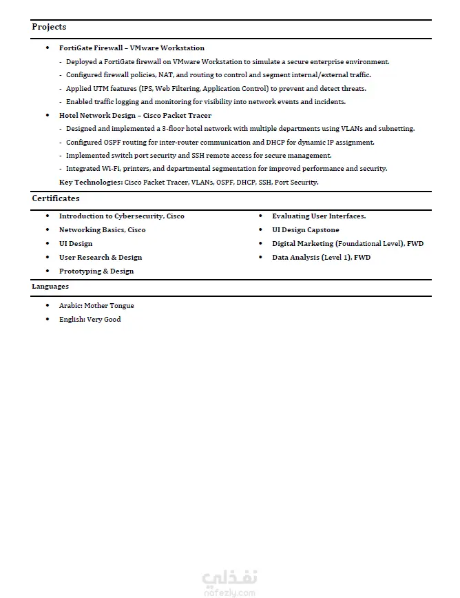 إذا كنت تبحث عن وظيفة وتحتاج إلى سيرة ذاتية احترافية باللغة الإنجليزية تساعدك على جذب انتباه مسؤولي التوظيف، فأنا أقدم لك خدمة إنشاء وتصميم CV احترافي ومنظم يعرض مهاراتك وخبراتك بطريقة واضحة واحترافية. سأقوم بإعداد السيرة الذاتية بأسلوب احترافي متوافق مع متطلبات الشركات وأنظمة التوظيف الحديثة، مع تنظيم المعلومات بطريقة تساعد على إبراز خبراتك ومهاراتك بشكل أفضل. هذه الخدمة مناسبة للخريجين الجدد وأصحاب الخبرة الذين يرغبون في تحسين فرصهم في الحصول على وظيفة.