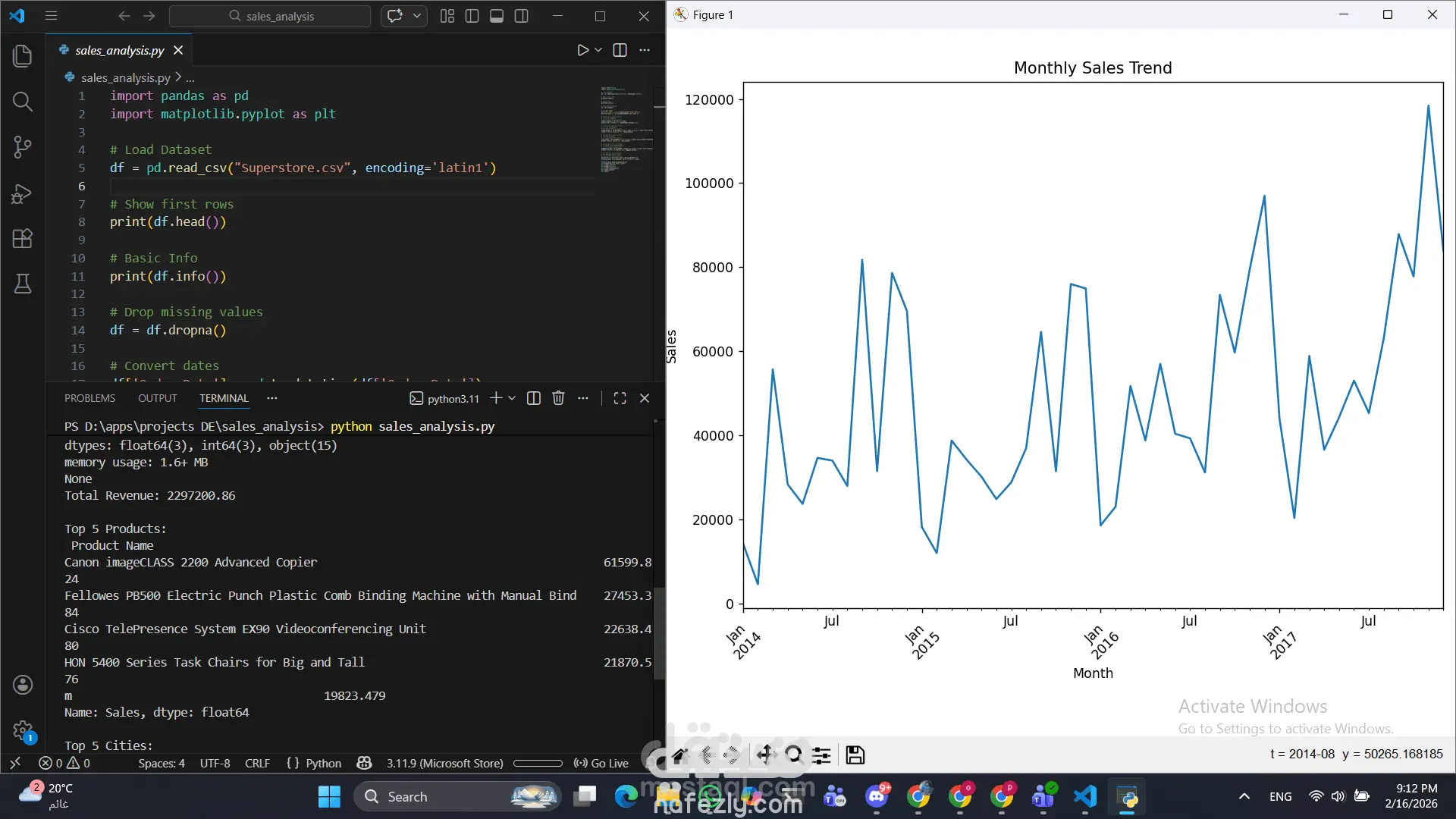 برنامج بايثون لتحليل البيانات من ملفات CSV أو Excel، يقدم إحصاءات أساسية مثل المتوسط، الانحراف المعياري، والحد الأقصى/الأدنى لكل عمود. يمكنه أيضاً رسم رسوم بيانية لتوضيح الاتجاهات والأنماط في البيانات، مما يساعد الشركات أو الأفراد على اتخاذ قرارات مبنية على البيانات بسهولة. لغة البرمجة: Python المكتبات المستخدمة: Pandas, Matplotlib, Seaborn, NumPy نوع المشروع: تحليل بيانات / Visualization مدة التنفيذ: 1–2 يوم (لو صغير) المخرجات: ملف Python + رسوم بيانية + تقرير مختصر