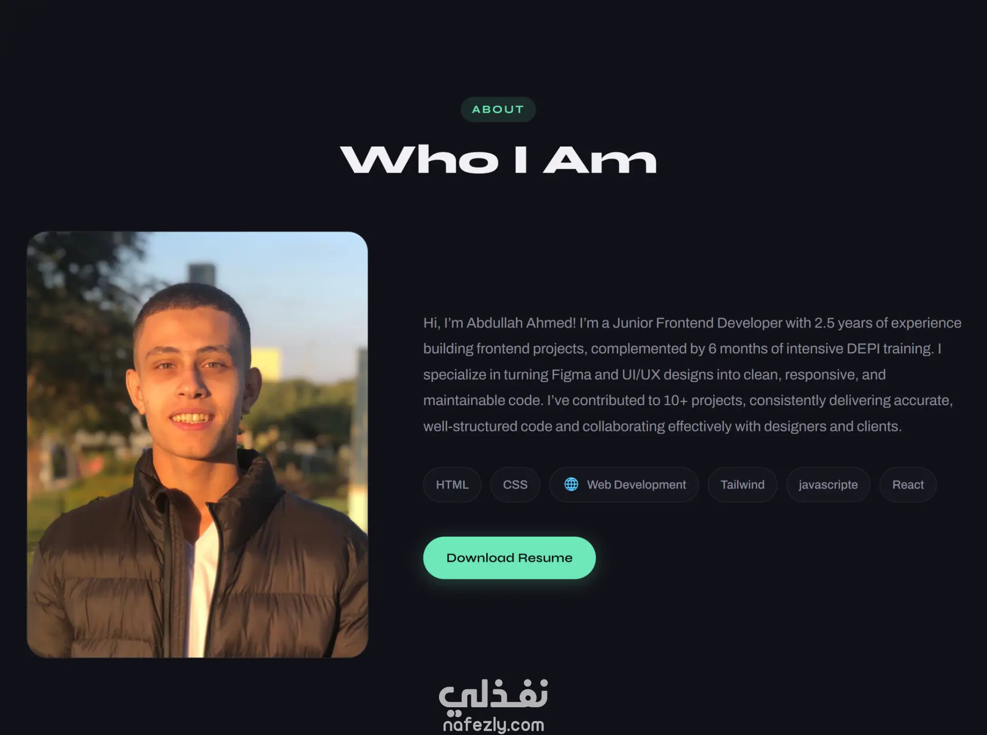 تصميم موقع Portfolio احترافي متجاوب 100% باللغتين العربية والإنجليزية مع دعم Dark Mode و Light Mode