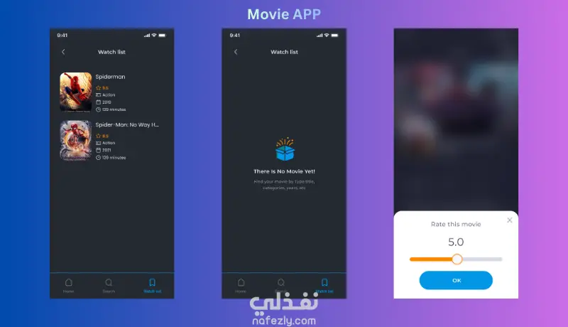 يعتمد التطبيق على استخدام API لعرض بيانات الأفلام مثل اسم الفيلم والتقييم والوصف وتاريخ الإصدار.