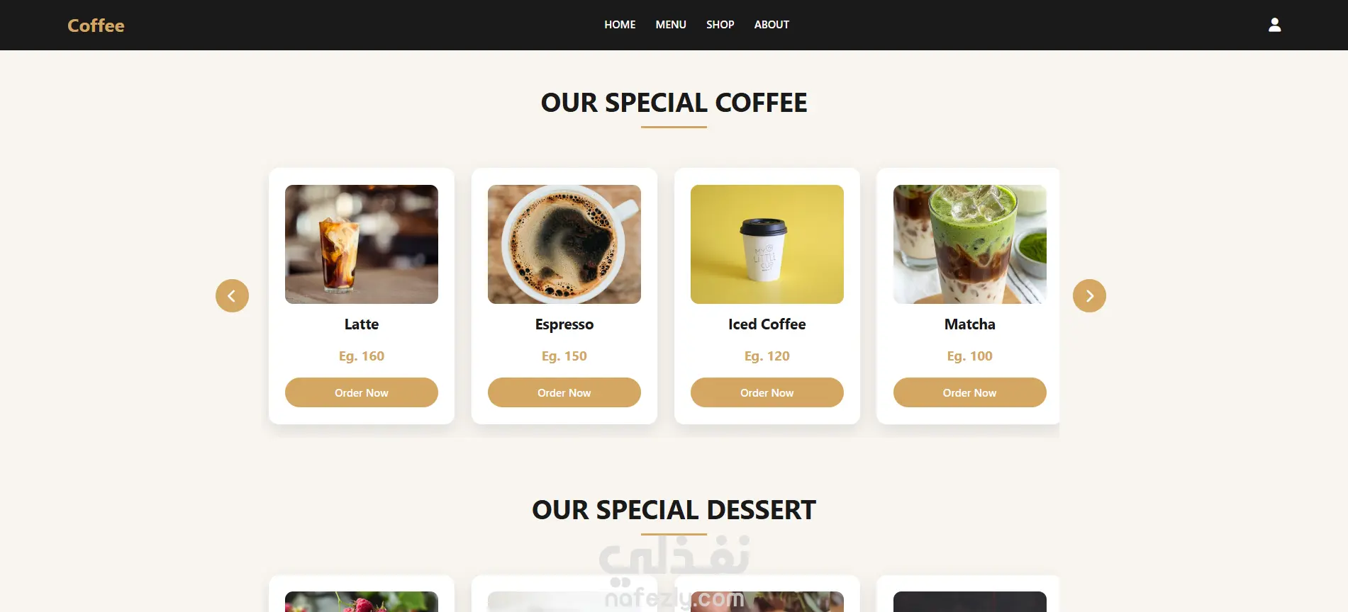 عمل واجهة امامية لموقع قهوة