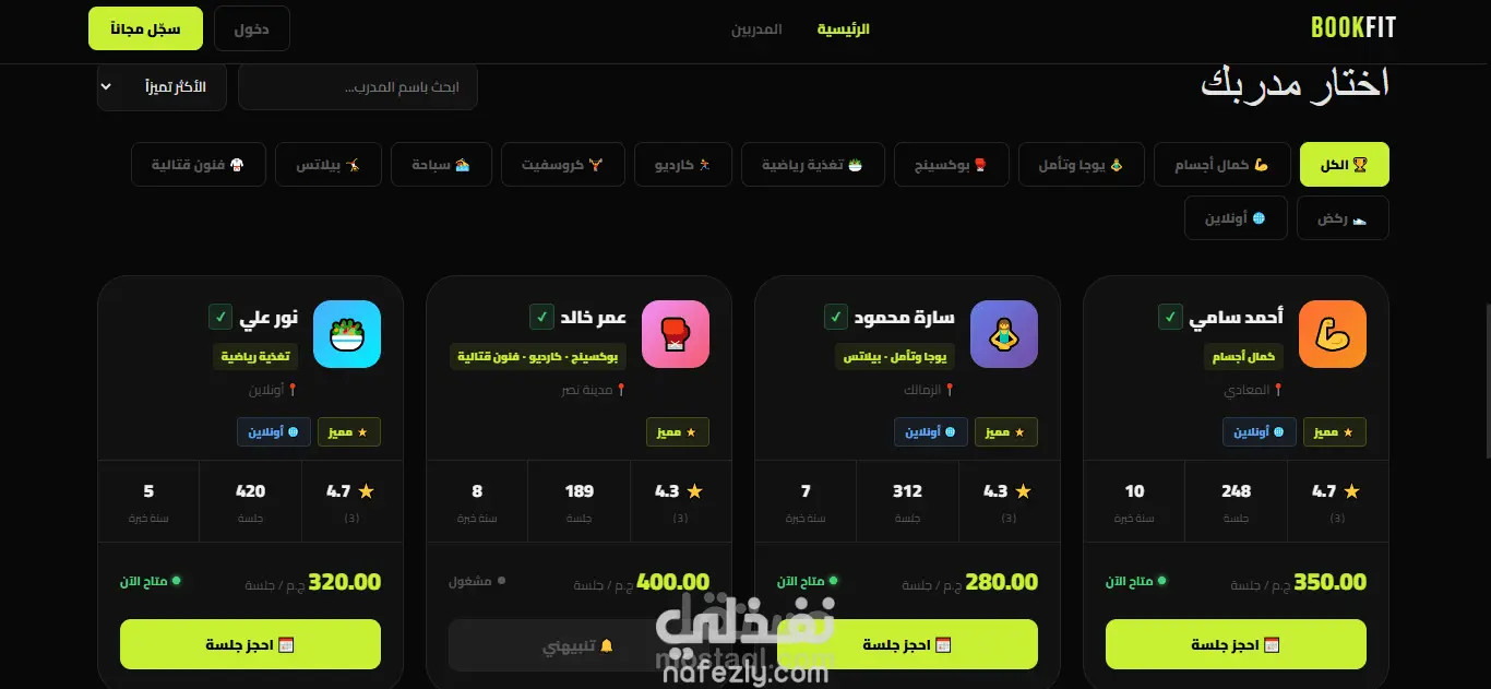 منصة FitBook — حجز مدربين رياضيين | React + Django