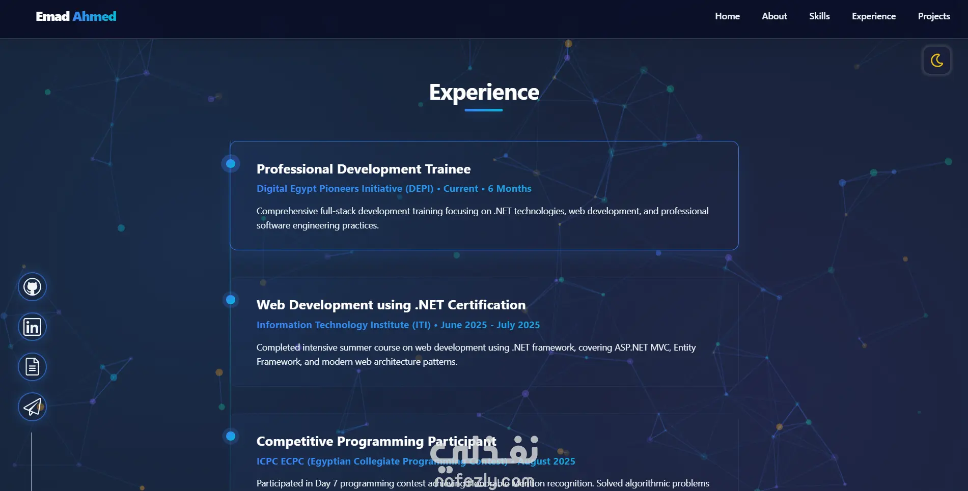 معك Emad، مطور ويب متخصص في تصميم وتطوير واجهات المستخدم الحديثة (Front-End Development). أمتلك خبرة في بناء مواقع بورتفوليو احترافية بتصميم عصري وتجربة مستخدم سلسة تعكس الهوية الشخصية والمهنية بشكل مميز.