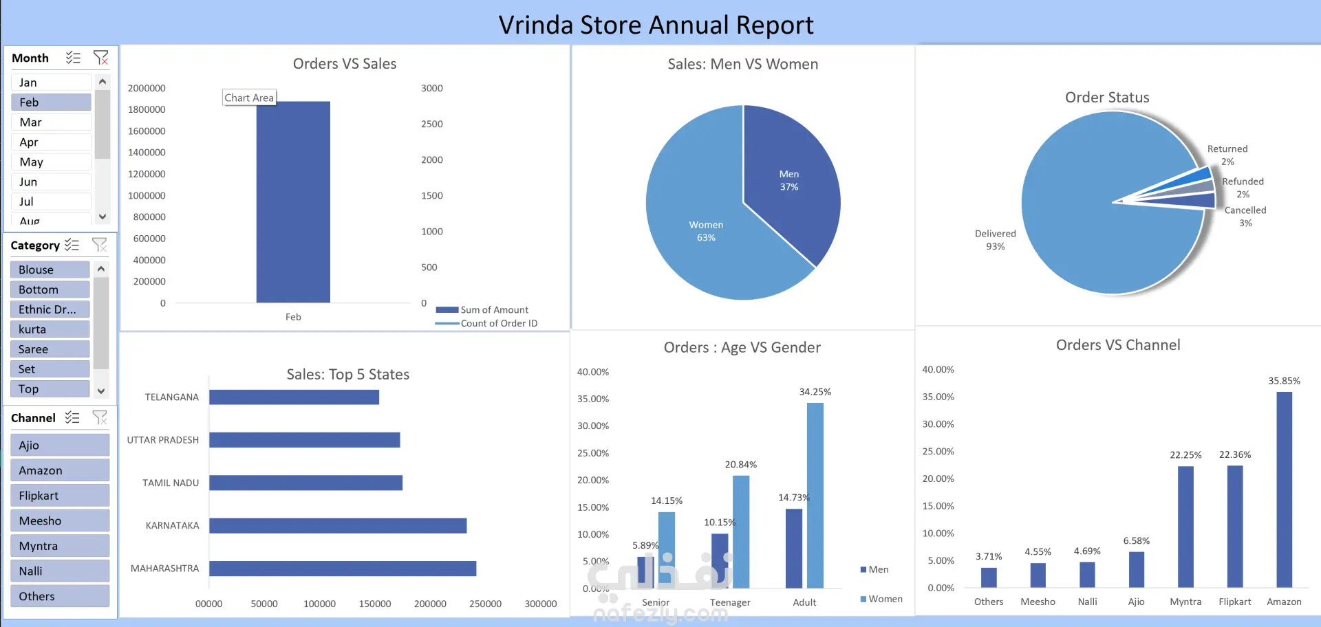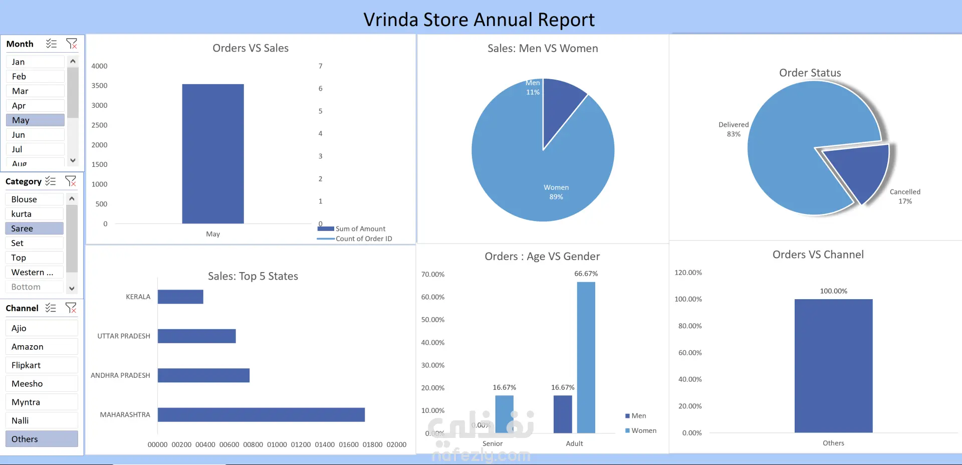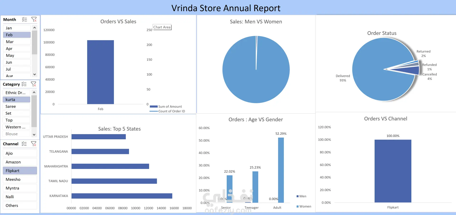 هل تمتلك بيانات ضخمة وتريد تحويلها إلى قرارات ذكية؟ أقدم لك خدمة تصميم لوحات تحكم احترافية وتفاعلية تمنحك نظرة شاملة ودقيقة على أداء عملك فقط بضغطة زر. هذا العمل يشمل : 1- تحليل المبيعات والطلبات: مقارنة شهرية بين حجم الطلبات وإجمالي الأرباح 2- تحليل سلوك العملاء: تصنيف المبيعات بناءً على النوع الاجتماعي والفئات العمرية. 3- تتبع حالة الطلبات: رسم بياني يوضح نسبة الطلبات المستلمة، المرتجعة، والملغاة بدقة. 4- تحليل القنوات البيعية: معرفة المنصة الأكثر مبيعاً. 5-التوزيع الجغرافي: تحديد أفضل 5 ولايات أو مدن من حيث المبيعات. 6- لوحة تفاعلية بالكامل: تتيح لك تصفية البيانات حسب "الشهر"، "الفئة"، أو "قناة البيع" لتحديث التقارير فورياً
