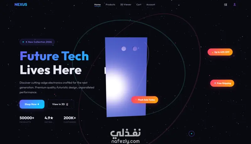 متجر إلكتروني تفاعلي يقدم تجربة تسوق حديثة تعتمد على عرض المنتجات بتقنية ثلاثية الأبعاد وتحريكات احترافية. يتيح للمستخدم استكشاف المنتجات بزاوية 360°، اختيار الألوان والمقاسات، وإتمام الشراء عبر واجهة سلسة وسريعة الاستجابة.
