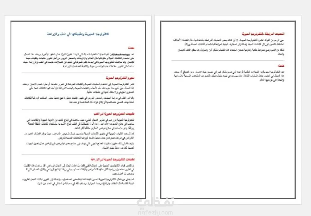 قمتُ بكتابة مقال علمي باللغة العربية يوضح مفهوم Biotechnology وأهميته في التطور العلمي الحديث. يتناول المقال شرحًا مبسطًا لأساسيات التكنولوجيا الحيوية، مع توضيح دورها في تطوير المجالات الطبية والزراعية.