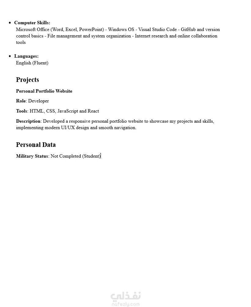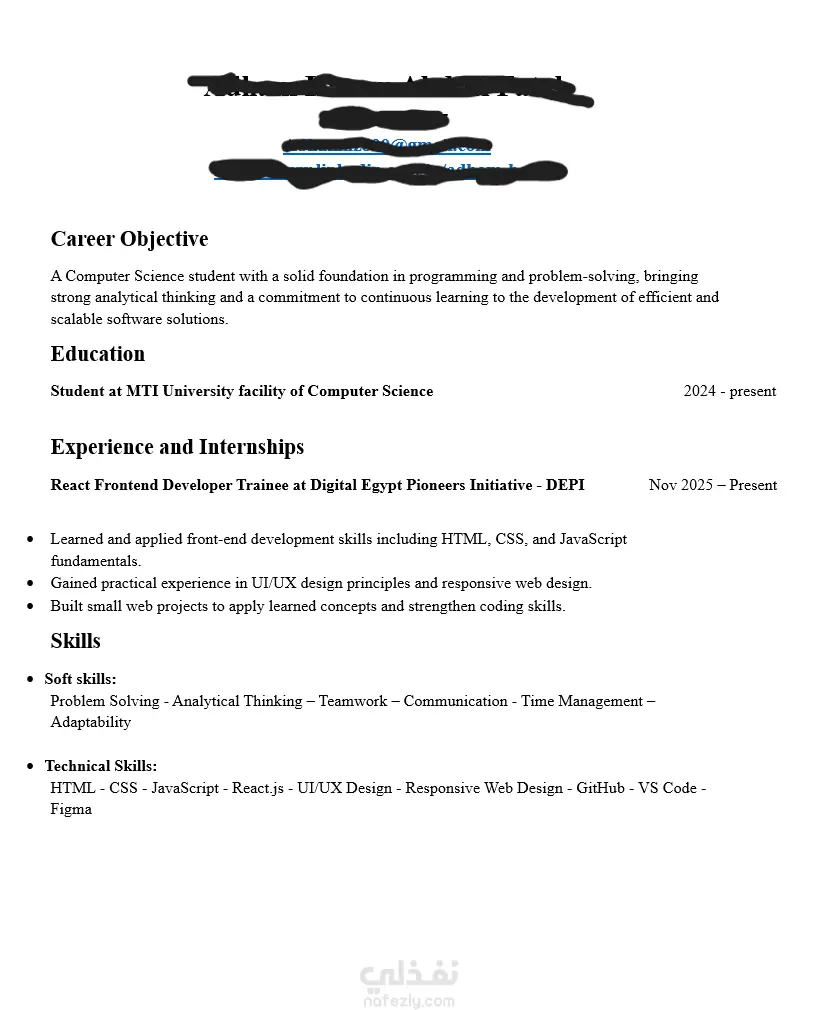 كتابة وصياغة المحتوى بطريقة احترافية و إبراز المهارات ونقاط القوة بشكل واضح مع تنسيق عصري وأنيق مناسب لكل المجالات و تنظيم الخبرات والدورات بطريقة احترافية بالاضافه الي تصميم متوافق مع أنظمة ATS