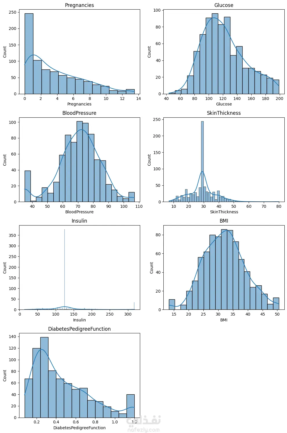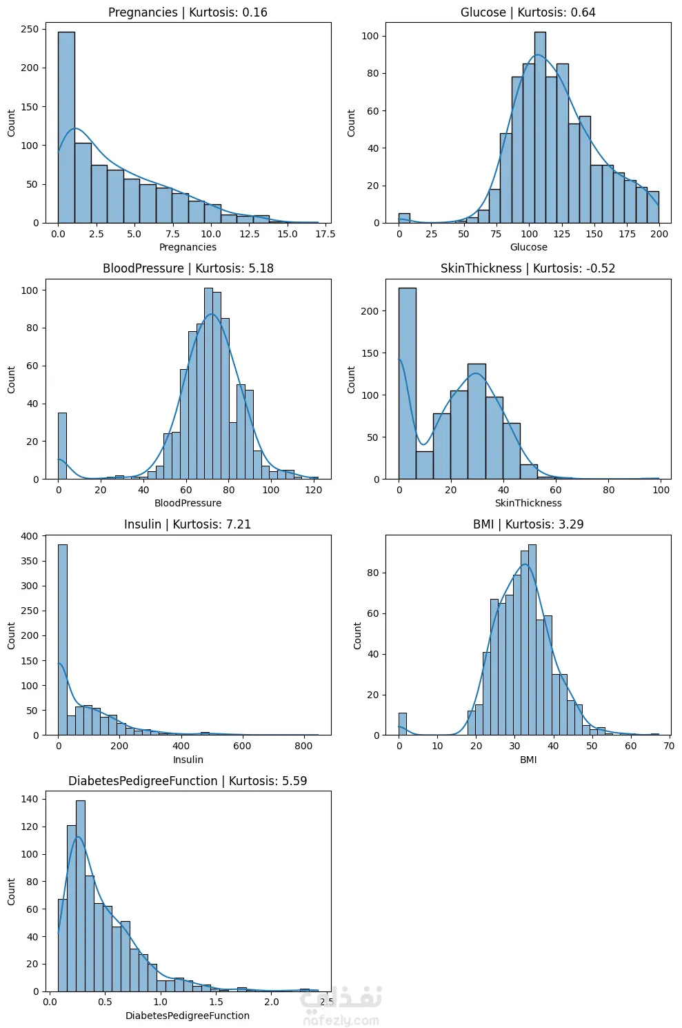 مشروع يركز على تحليل البيانات الطبية لمرض السكري باستخدام تقنيات علم البيانات وأدوات تحليل البيانات في Python. يتضمن العمل فهم البيانات الطبية لـ 768 مريضة، واكتشاف مشاكل جودة البيانات مثل القيم المفقودة والقيم غير المنطقية والقيم الشاذة، ثم إجراء تحليل استكشافي شامل (EDA) لفهم توزيع المتغيرات والعلاقات بينها. يشمل التحليل دراسة المؤشرات الصحية مثل الجلوكوز، ضغط الدم، مؤشر كتلة الجسم (BMI)، الأنسولين، والعمر لاكتشاف الأنماط المرتبطة بمرض السكري. كما يتضمن المشروع تنظيف البيانات، المعالجة المسبقة، التحليل الإحصائي، وتصور البيانات لاستخراج رؤى تدعم اتخاذ القرار وبناء نماذج تحليلية لاحقاً.