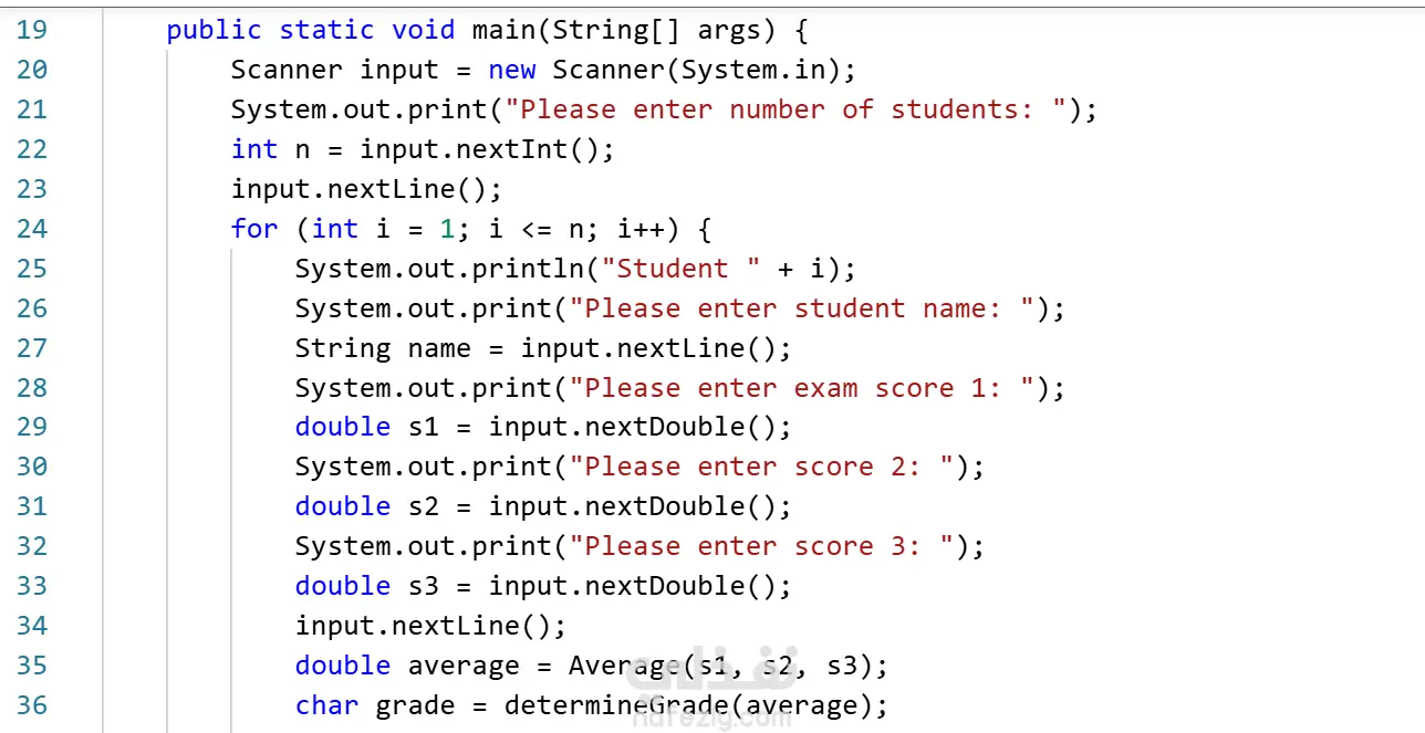 الكود عباره عن تحديد درجات الطلبه