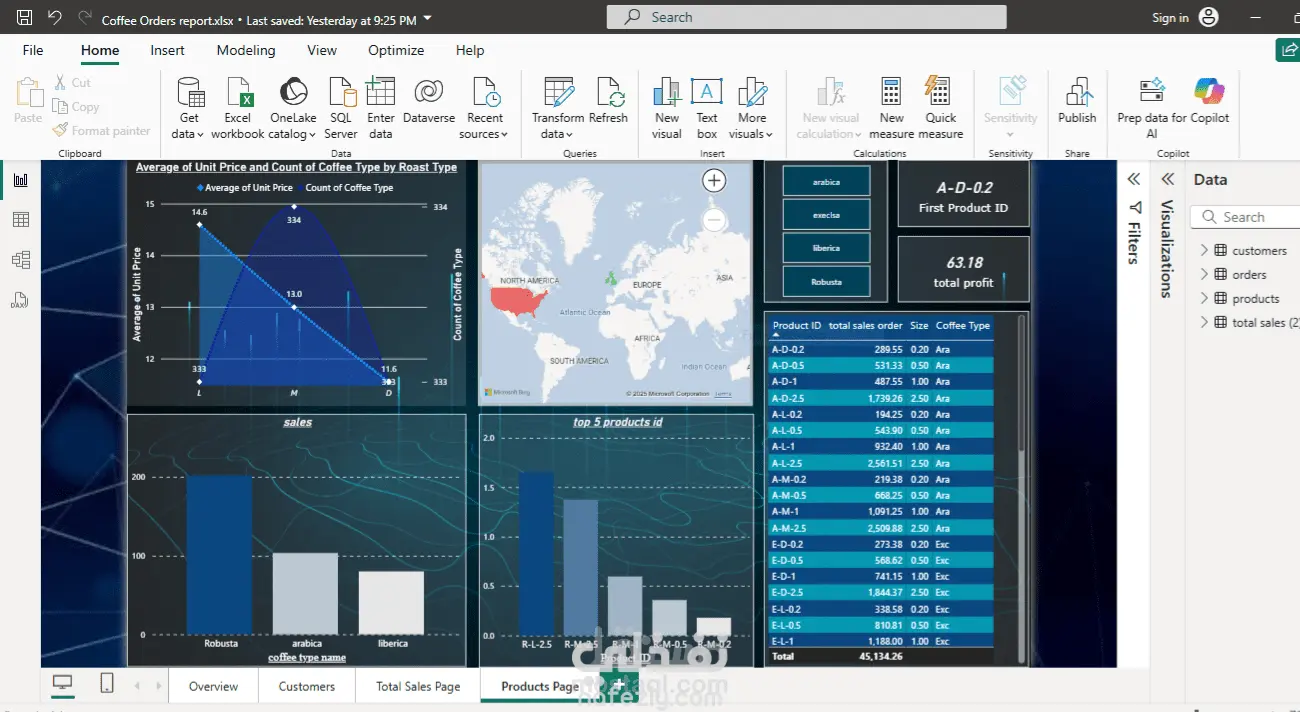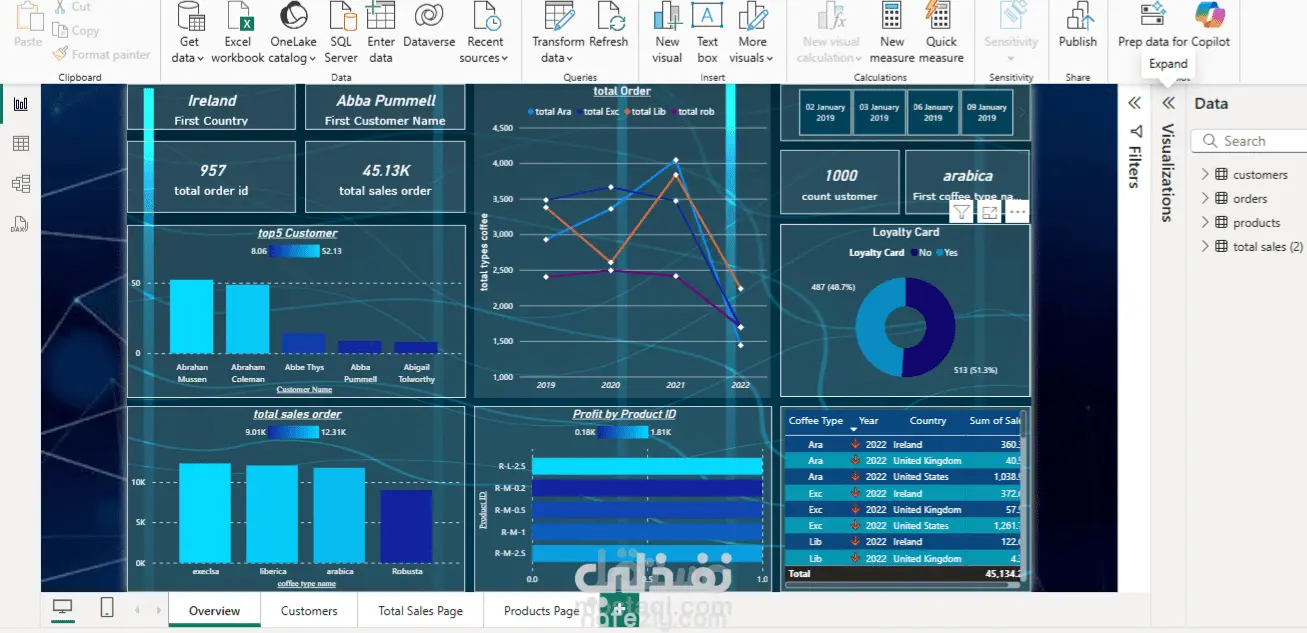 تحليل بيانات مبيعات القهوة باستخدام power bi