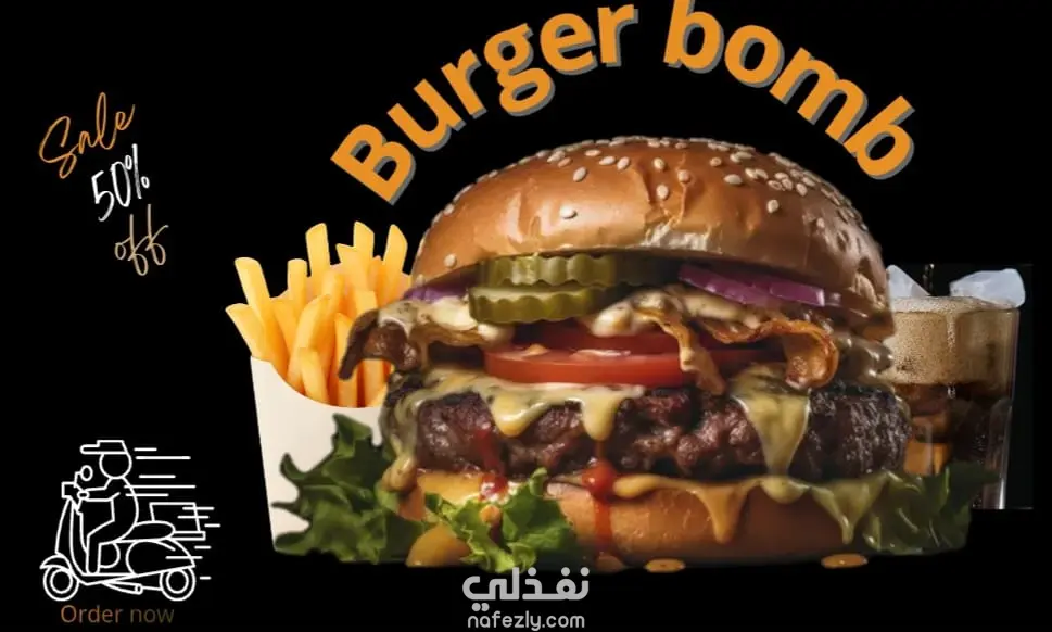 التصميم هو ملصق إعلاني (Poster) أو بنر رقمي مخصص لمنصات التواصل الاجتماعي، ويهدف بشكل أساسي لترويج عرض خاص لمطعم وجبات سريعة.
