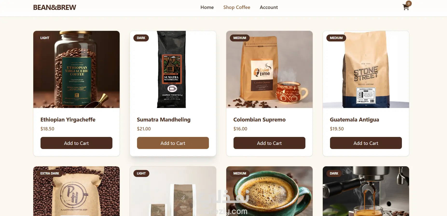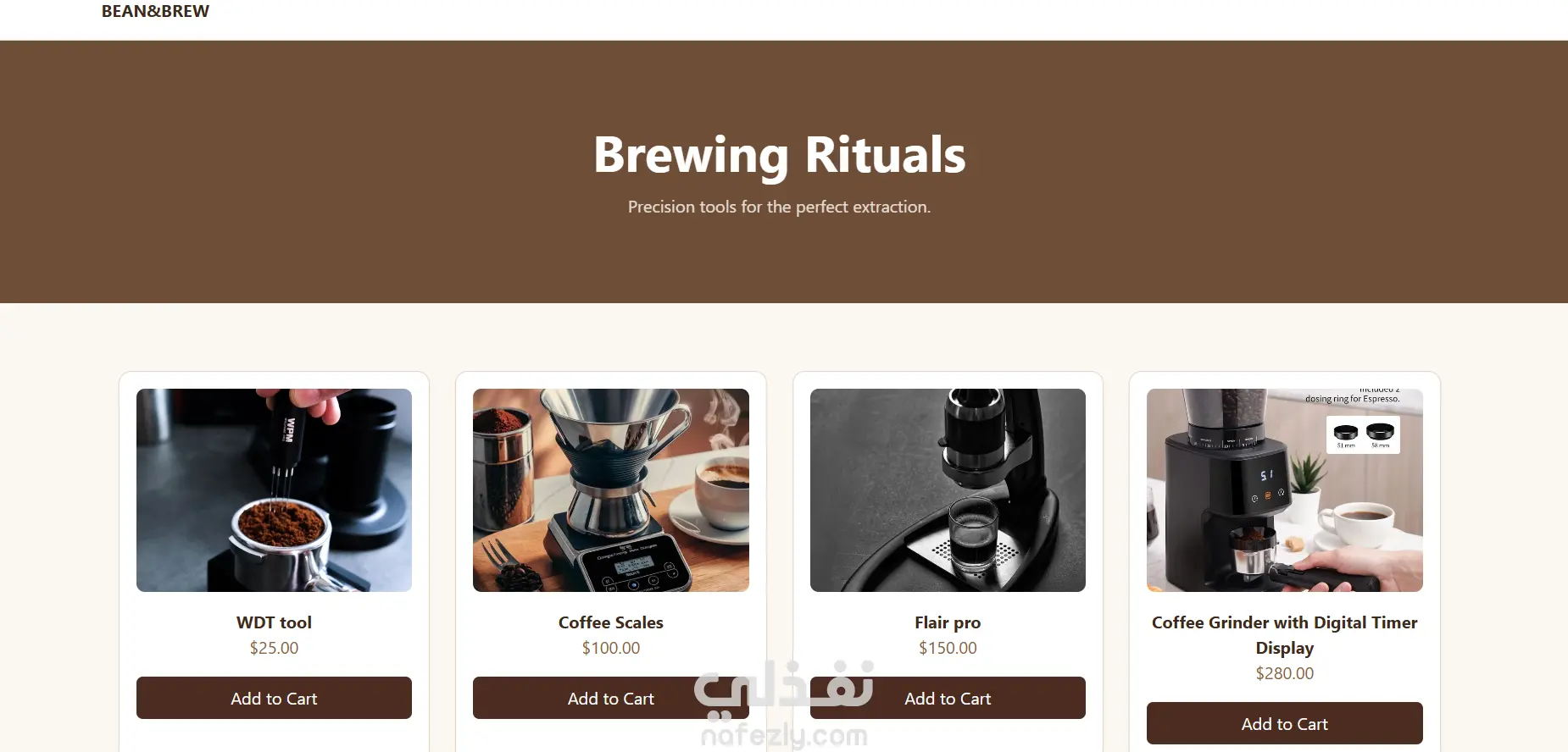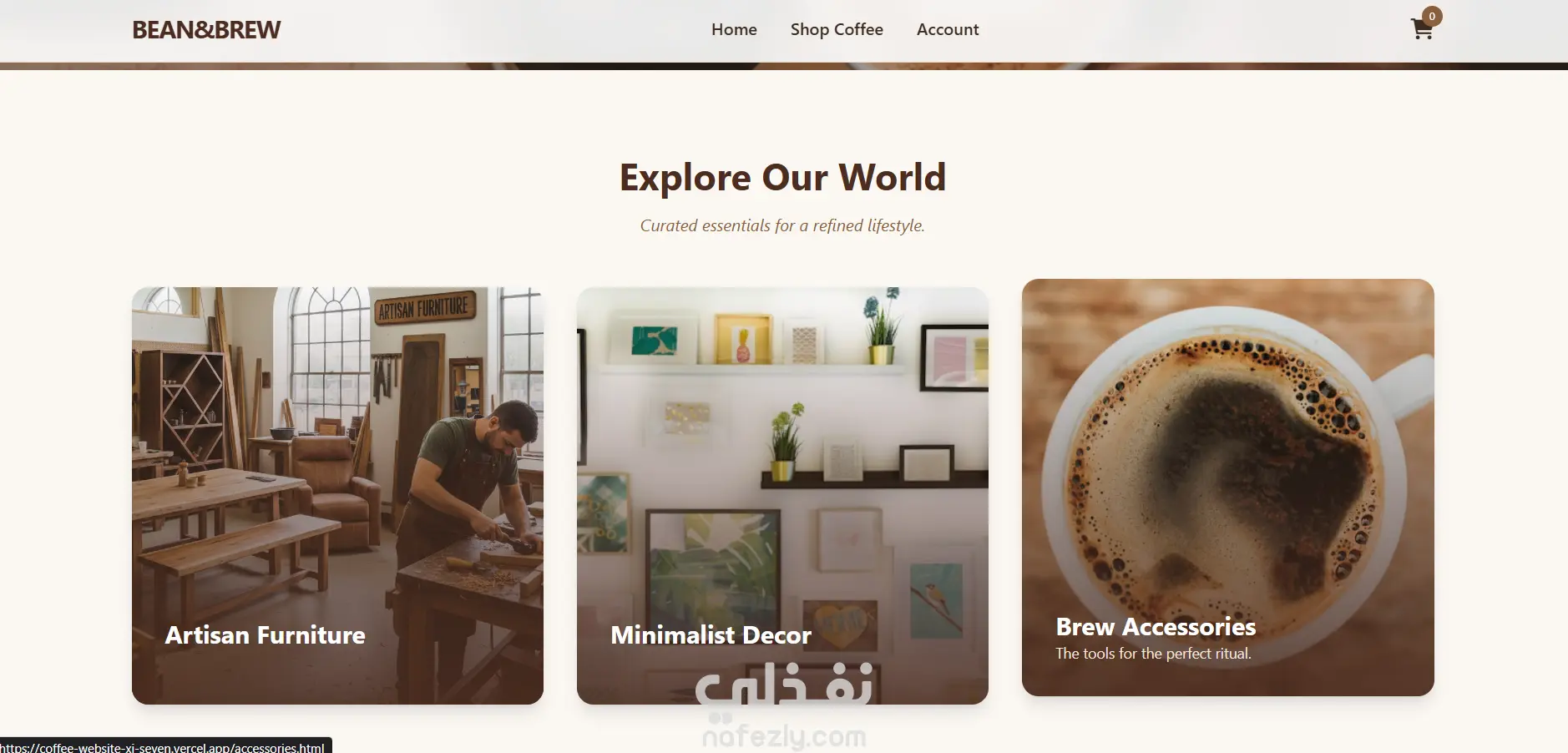 موقع إلكتروني متكامل لعلامة قهوة فاخرة، مصمم ليقدم تجربة تسوق سهلة وممتعة لعشاق القهوة.