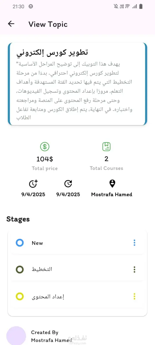 Pick Up LMS – Learning Management System تطبيق موبايل تعليمي تم تطويره باستخدام Flutter و Dart، موجّه لكل من الطلاب وأعضاء هيئة التدريس (Instructors) لإدارة العملية التعليمية بكفاءة. يعتمد التطبيق على BLoC State Management وClean Architecture لضمان تنظيم الكود، سهولة الصيانة، وقابلية التوسّع، مع تكامل واجهات RESTful APIs لتبادل البيانات وتقديم تجربة مستخدم مستقرة وسلسة.