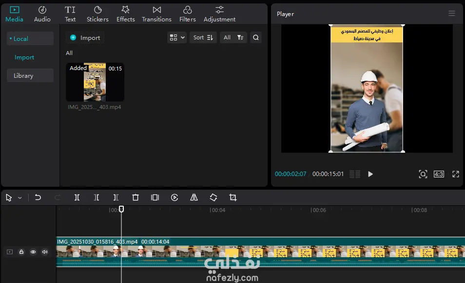 *يمكن عمل تعديلان علي الفيديو بحد اقصي