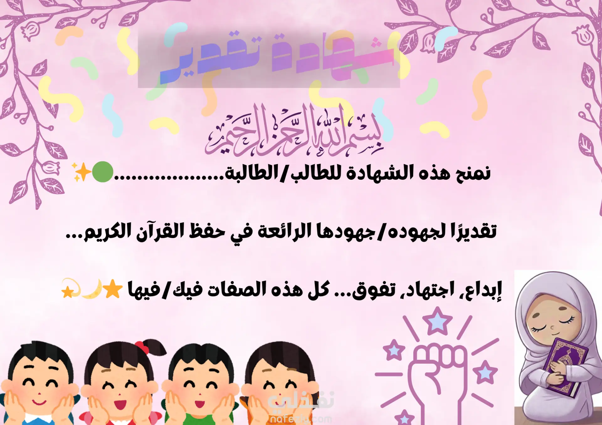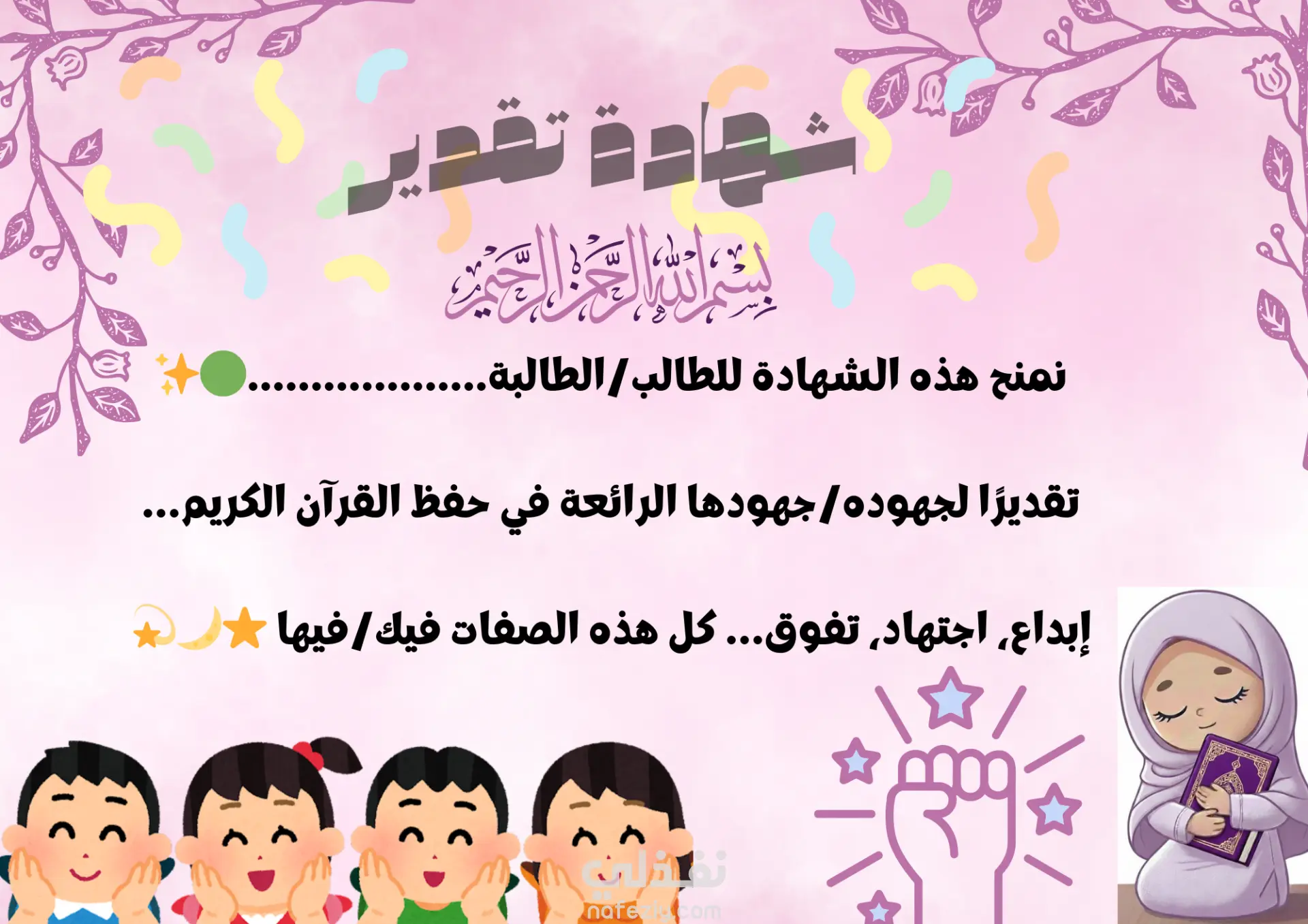 شهادة تقدير مميزة وجذابة للأطفال