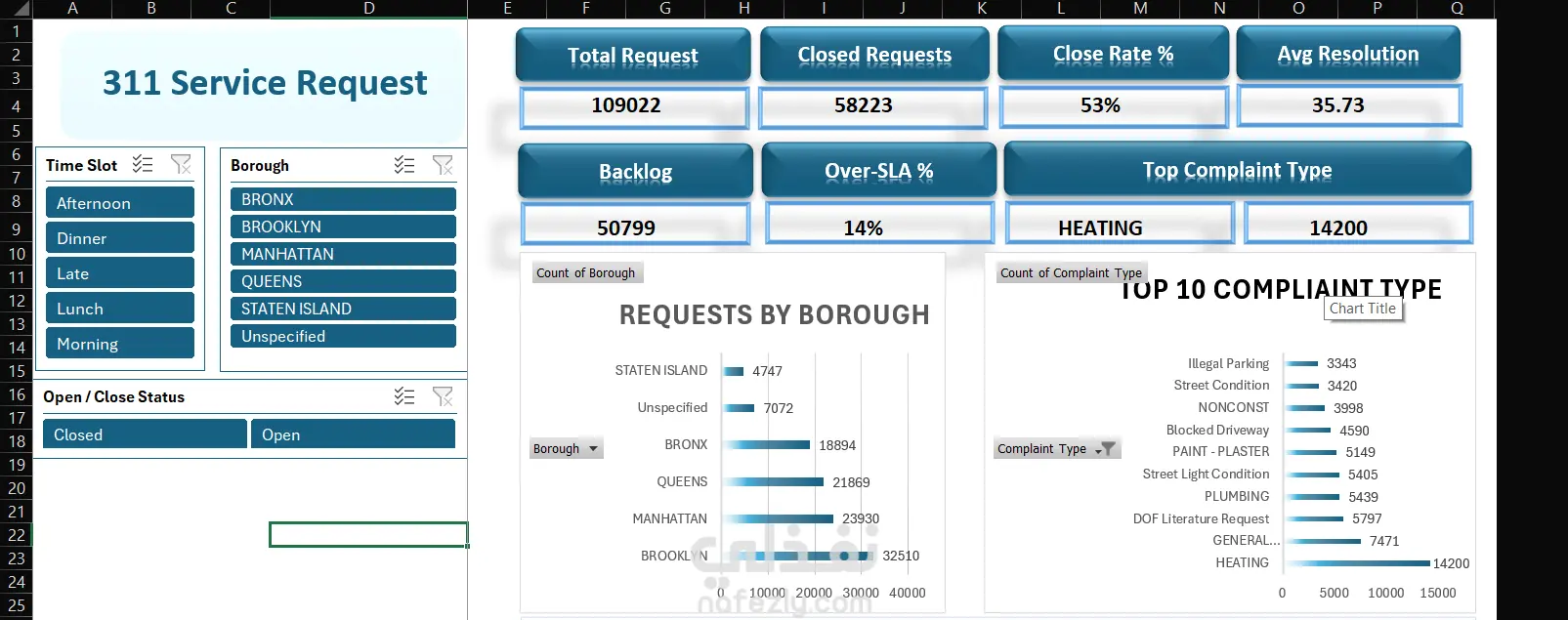 هذه لوحة معلومات شاملة لتحليل طلبات الخدمة الحكومية في مدينة نيويورك. لقد شاركت في هذا المشروع وكانت مهمتي الأساسية هي تنظيف ومعالجة البيانات باستخدام Power Query. جميع خطوات التنظيف والتحويل التي سيتم شرحها أدناه قمت بتنفيذها شخصياً.