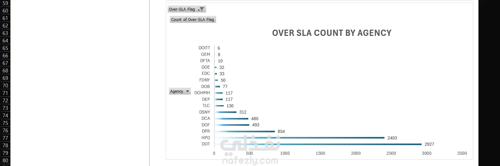 - مؤشرات الأداء (KPIs) تستخدم حقول Resolution Hours و Over-SLA Flag