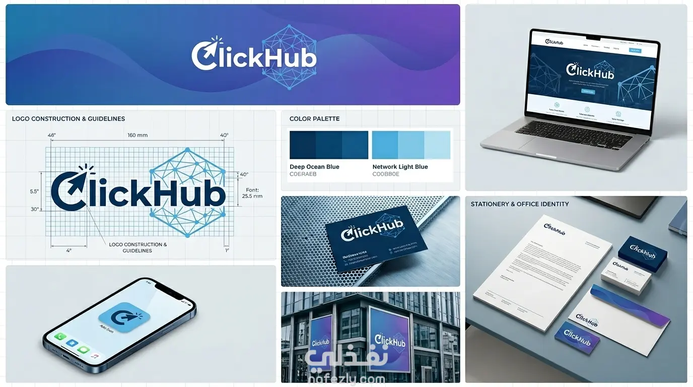 قمت بتصميم شعار ClickHub لشركة متخصصة في إكسسوارات الحاسوب، مع موك-أب احترافي يبرز الشعار على الأجهزة والمنتجات بشكل واقعي وجذاب. التصميم يجمع بين الحداثة والاحترافية، مع دمج عناصر تقنية مثل مؤشر الفأرة وشبكة رقمية لتعكس معنى “Click” و“Hub”، مع ألوان تقنية حديثة (أزرق وأسود) تناسب العلامة التجارية. تم تقديم 4 نسخ موك-أب مختلفة تشمل: ماوس وكيبورد، علبة منتج، شاشة كمبيوتر، وخلفية تقنية حديثة.