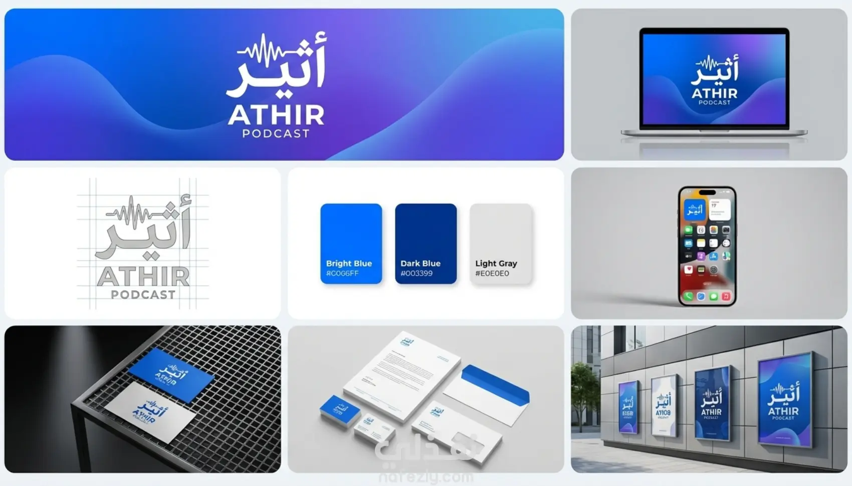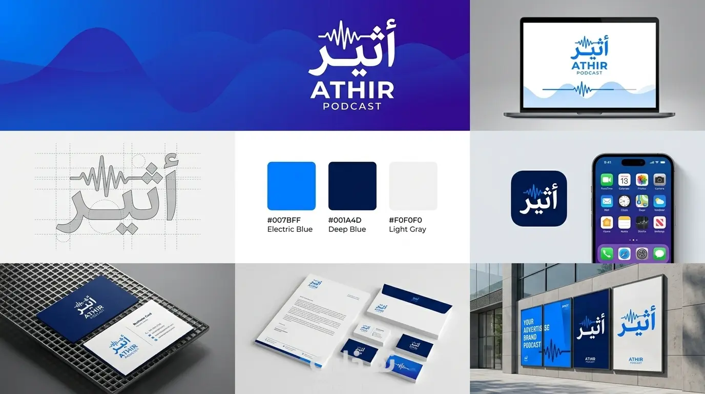 تصميم الشعار والهوية البصرية لشركة البودكاست 'أثير'.