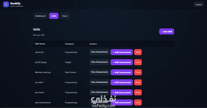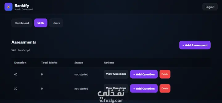 طوّرتُ نظام تقييم المهارات والشارات الرقمية، الذي يقيّم مهارات المستخدمين من خلال الاختبارات ويمنحهم شارات رقمية بناءً على أدائهم. يساعد النظام في تتبّع التقدم، والاعتراف بالإنجازات، وتحفيز التعلّم المستمر. تم بناؤه باستخدام Node.js وHTML وCSS وJavaScript وMongoDB.