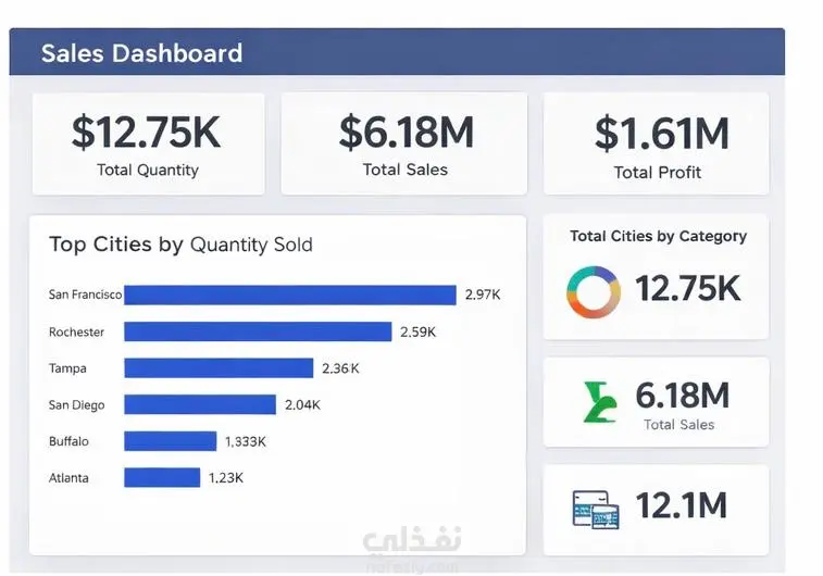 قمت بتصميم لوحة تحكم تفاعلية لتحليل بيانات المبيعات باستخدام Power BI. تتضمن لوحة التحكم: • إجمالي الكمية المباعة (Total Quantity) • إجمالي المبيعات (Total Sales) • إجمالي الأرباح (Total Profit) • تحليل المبيعات حسب الفئة (Category) • تحليل المبيعات عبر السنوات • تحليل الأرباح حسب المدن • عرض البيانات باستخدام مخططات تفاعلية يساعد هذا الـ Dashboard في فهم أداء المبيعات واتخاذ قرارات مبنية على البيانات