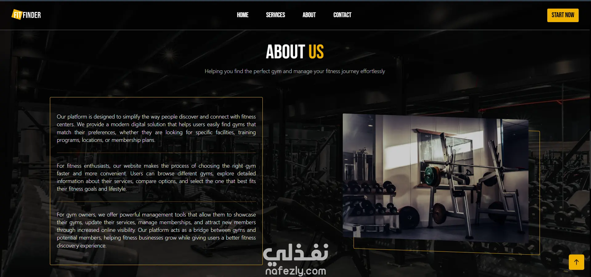 يُعَدّ هذا الموقع منصة متكاملة لخدمة عشاق الرياضة وأصحاب النوادي. يتيح للمستخدمين البحث عن جميع الصالات الرياضية المتاحة وفق احتياجاتهم وموقعهم الجغرافي، مع إمكانية استخدام خاصية البحث والفلاتر المتقدمة لتسهيل العثور على النادي المناسب. يمكن للمستخدمين الاطلاع على تفاصيل النوادي المختلفة، مثل المرافق المتاحة، أوقات العمل، والخطط المتنوعة للاشتراك.