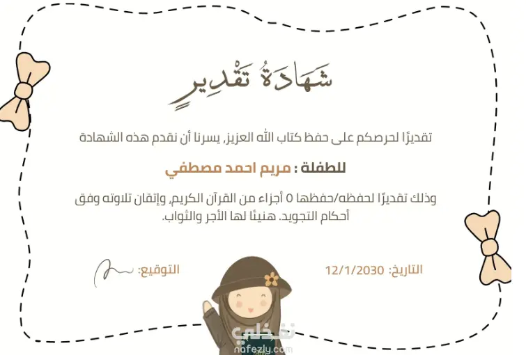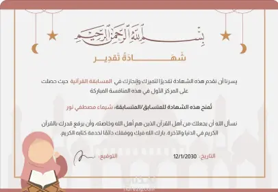 خدمة مستقلة احترافية متخصصة في تصميم شهادات التقدير عالية الجودة، يتم إعدادها بتصميمات أنيقة وتنسيقات احترافية وخطوط مميزة تمنح الشهادة طابعًا رسميًا وراقيًا يجعل كل من يتلقاها يشعر بالفخر. سواء كانت الشهادة للمناسبات المؤسسية، أو الإنجازات الأكاديمية، أو تكريم الموظفين، أو التكريمات المجتمعية — يتم تصميم كل شهادة بشكل مخصص ليعكس طبيعة المناسبة وهوية الجهة المنظمة. تسليم سريع، وتعديلات غير محدودة حتى الوصول إلى النتيجة المطلوبة، مع توفير الملفات بعدة صيغ مناسبة للطباعة والاستخدام الرقمي.