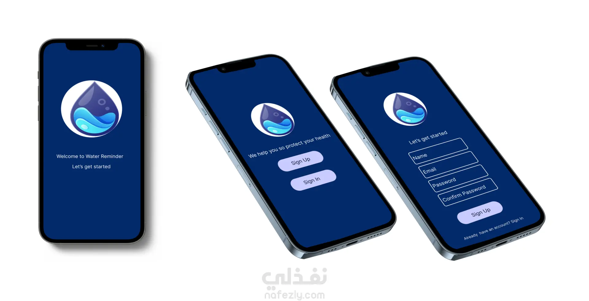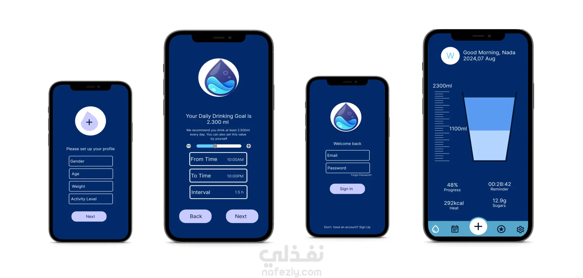 اعادة تصميم لتطبيق التذكير بشرب الماء باستخدام Figma & Illustrator